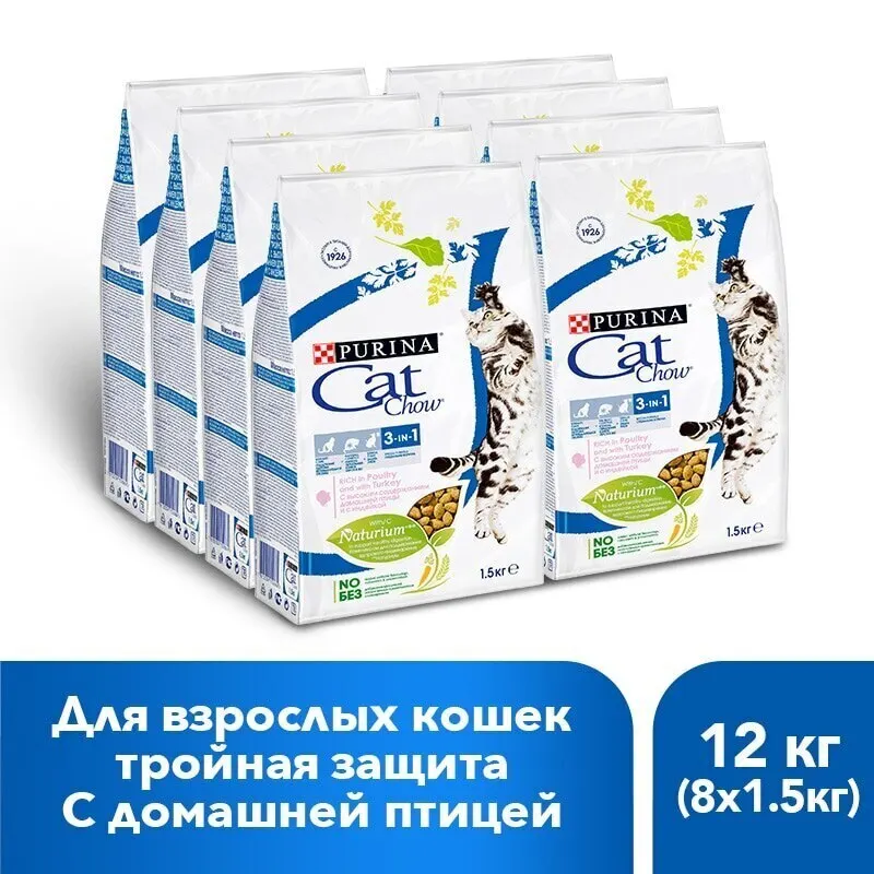 Сухой корм Cat Chow для взрослых кошек тройная защита 3 в 1, 12 кг.