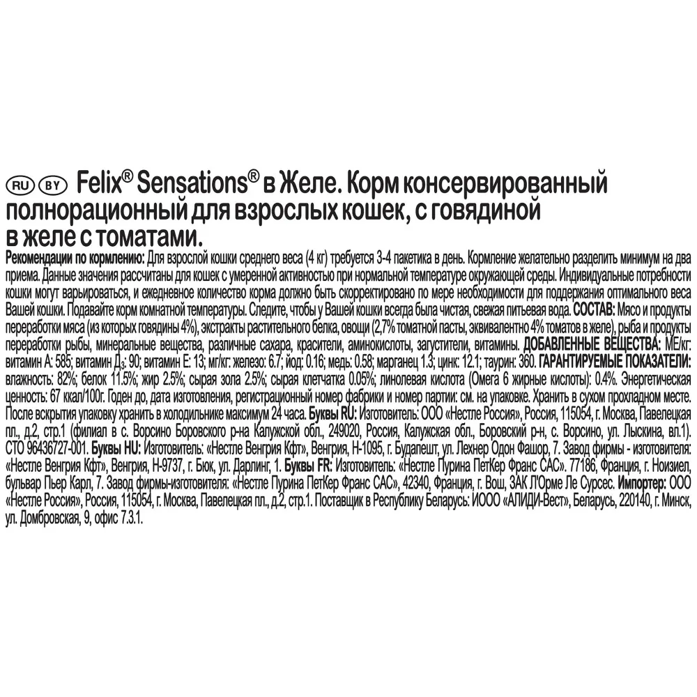 1. Felix знает, что счастливый кот – это здоровый кот, поэтому в корме Felix® Sensations содержатся Омега 6 жирные кислоты, а также правильное сочетание белков и витаминов, ежедневно необходимых вашему питомцу. Какова сенсация на вкус? Кот Феликс уверен: она похожа на Felix® Sensations!