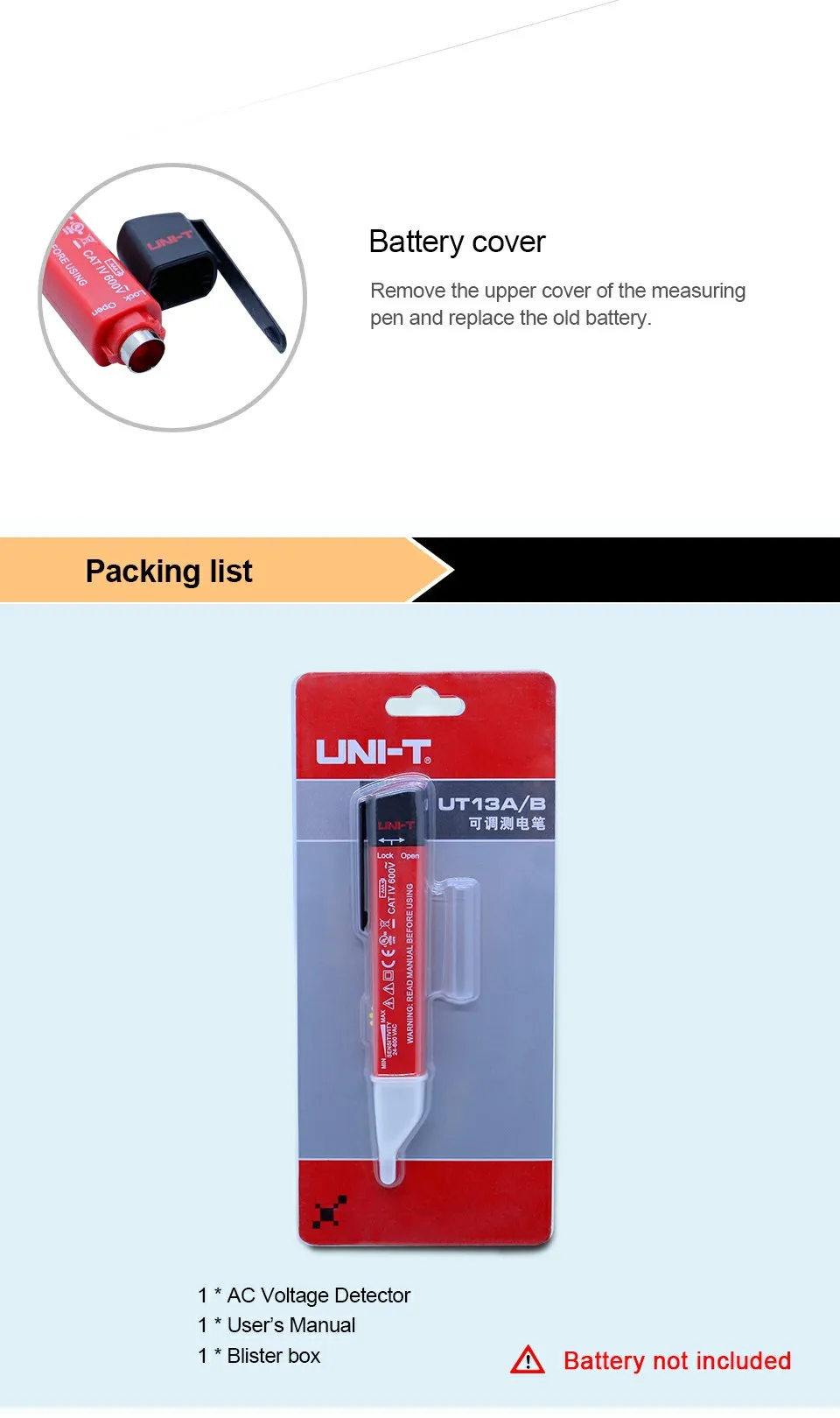 Батарея noe включена, потому что таможенная проверка! Упаковочный лист: 1 * детектор напряжения переменного тока 1 * Руководство пользователя на английском языке 1 * блистерная коробка