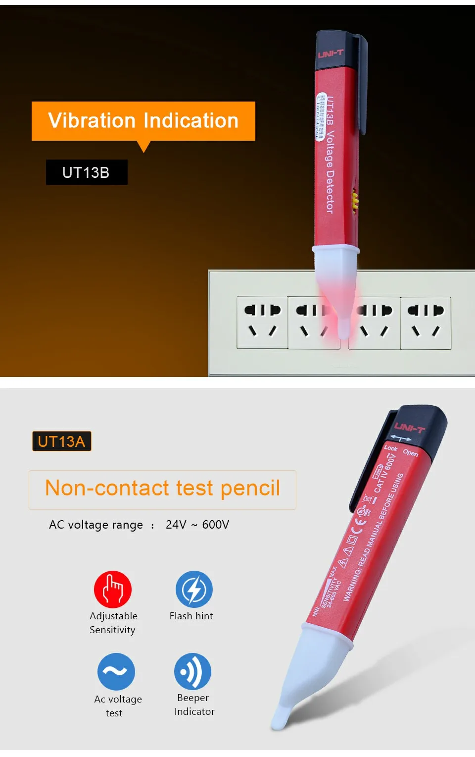 Бесконтактный UNI-T UT13A детекторы напряжения переменного тока Регулируемая чувствительность 50-1000 в электрический тест карандаш Бесплатная доставка