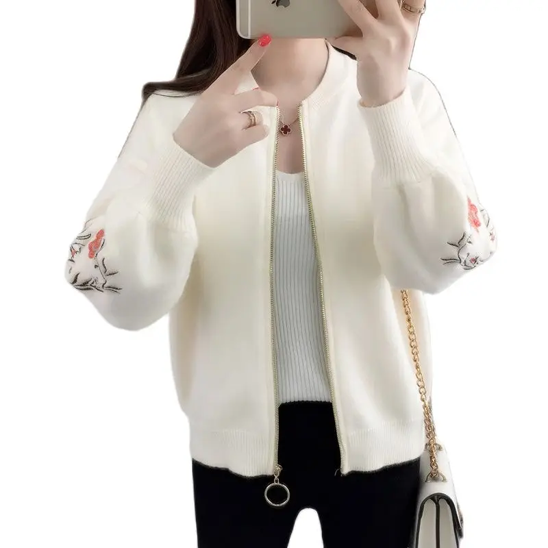 Новинка 2021, осенний наряд, свитер на молнии с вышивкой, Свободный вязаный кардиган для женщин
