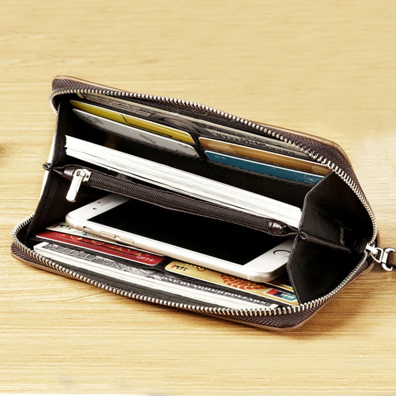 Модный повседневный мужской кошелек для длинных карт, мобильный телефон, тонкий многофункциональный набор для банковских карт на молнии
