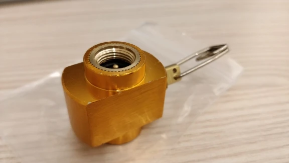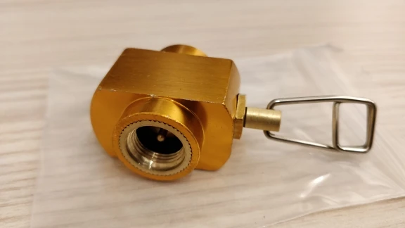 Запакован аскетично, но деталь очень прочная - в защите не нуждается: цельный кусок железа. Корпус судя по всему из алюминия или чего-то более тяжёлого. Крашеный в приятный желто-оранжевый цвет (реально цвет чуть теплее чем на фото). В корпус запресованы детали из жёлтого металла (хотелось бы верить, что латунь): резьба под баллоны и вентиль. Выглядит очень добротно. Почему-то весь корпус в мелких ссадинах (смотри фото), но на функционал это никак не влияет. Отправили быстро. Продавца рекомендую. Проверю переходник - дополню отзыв