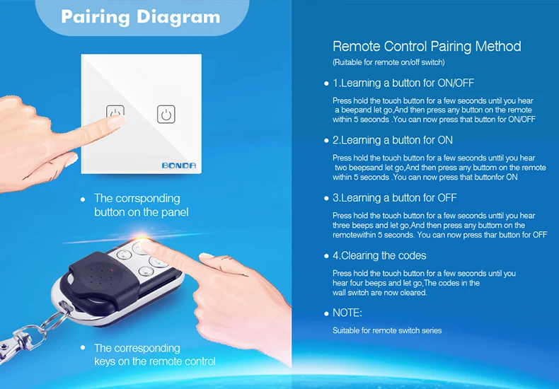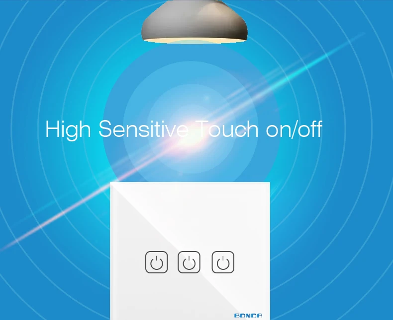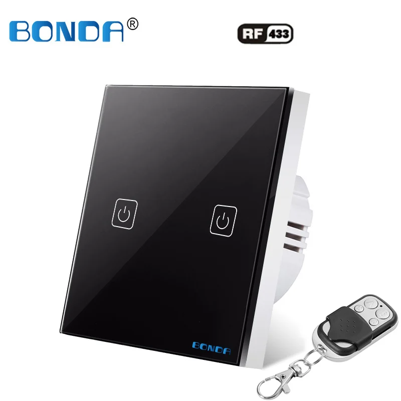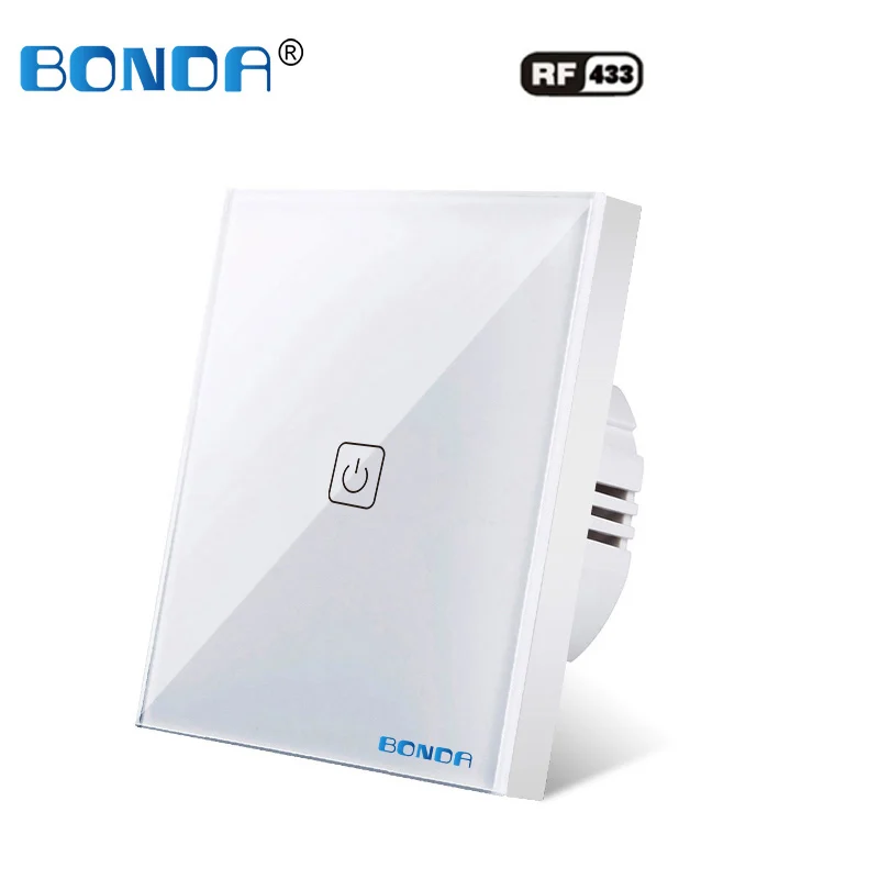 Настенный сенсорный выключатель BONDA, Беспроводной Выключатель с роскошной прозрачной стеклянной панелью, стандарт EU UK