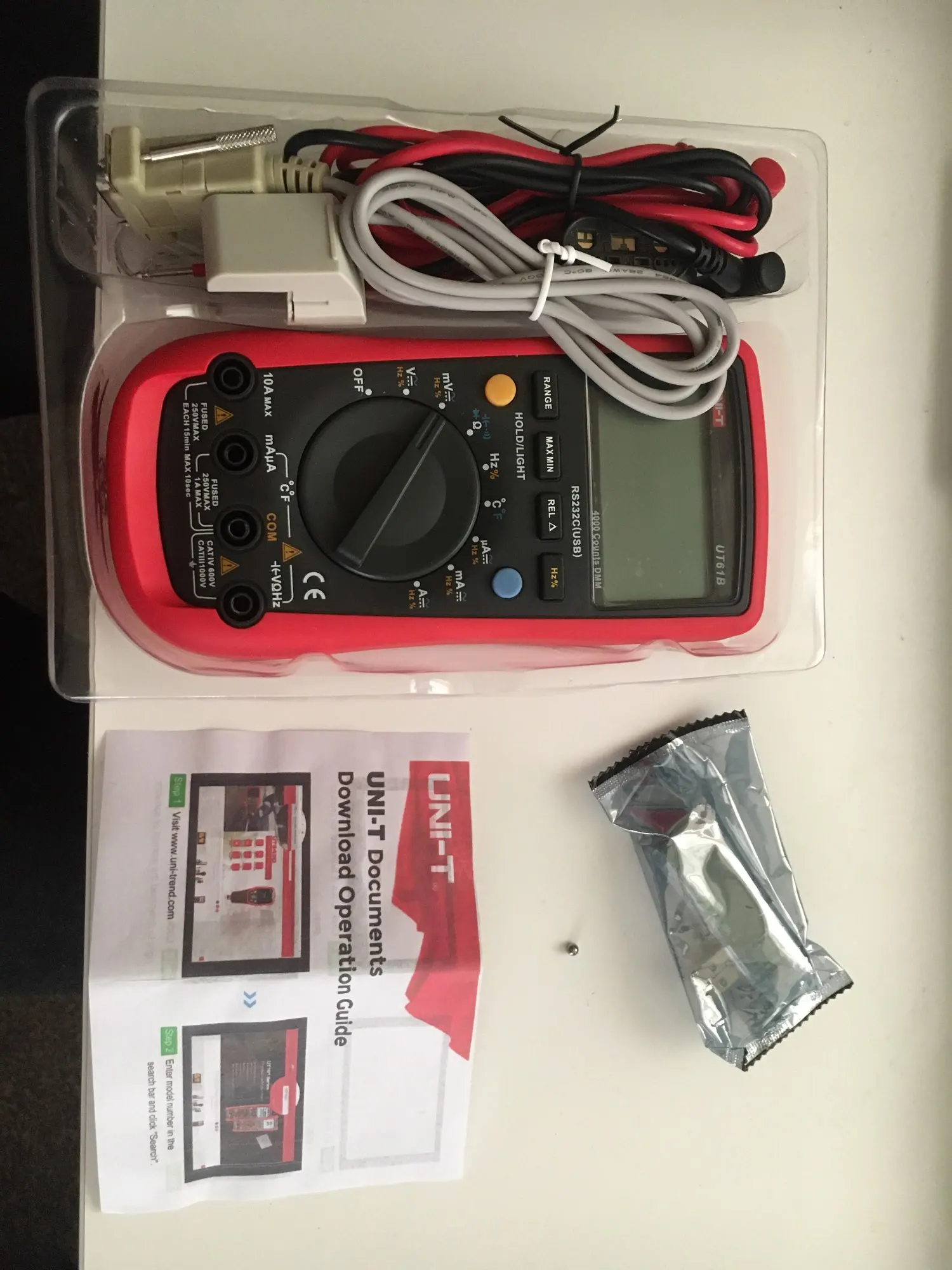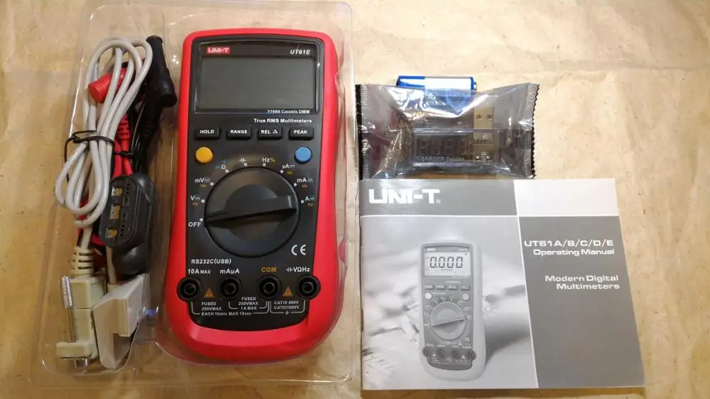 Комплектация: 1 * Цифровой мультиметр 1 * Тестовые провода 1 * Многоцелевой разъем 1 * CD программное обеспечение (Ожидаемый UT61A) 1 * RS-232 кабель (Ожидаемый UT61A) 1 * точечный контактный датчик температуры (Ожидаемый UT61A UT61D UT61E) 1 * Руководство пользователя на английском языке 1 * цветная коробка