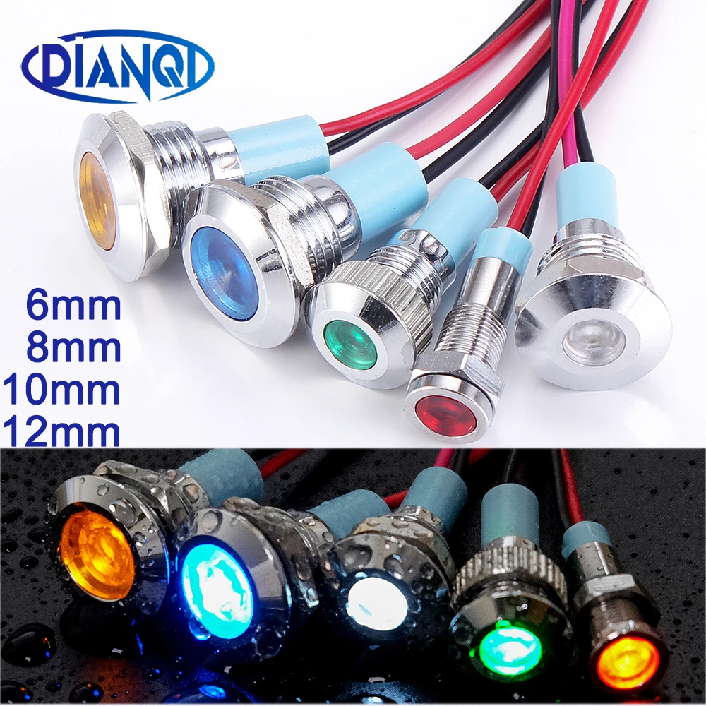 6 мм 8 мм 10 мм 12 мм металлический светодиодный Предупреждение индикатор водонепроницаемый IP67 сигнальная лампа контрольный переключатель проводов 3 в 5 в 12 В 220 В красный синий