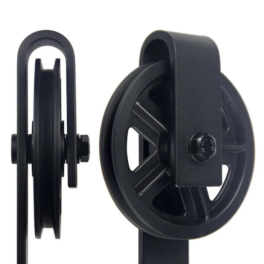 Черный углеродистая сталь Верхнее Крепление большое колесо оборудование для раздвижной двери сарая трек комплект