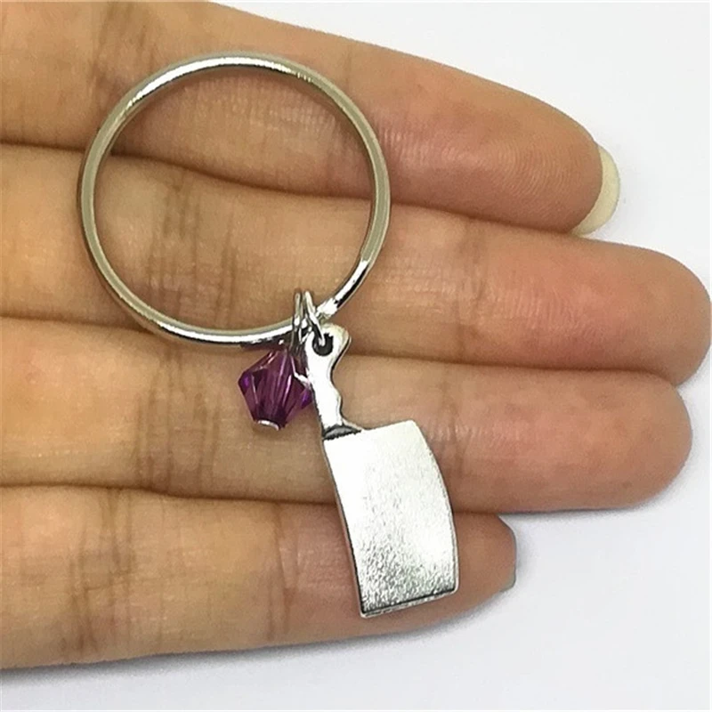 Кливер брелок Кухня Ножи брелок шеф-повара Брелок Серебряный цветной брелок первоначального брелок для ключей с камнем рождения