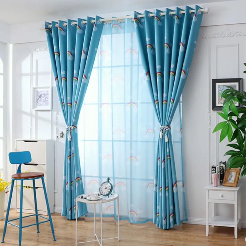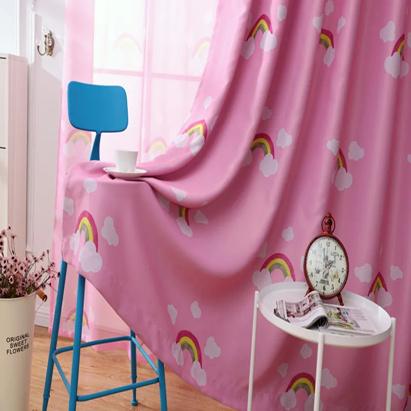 Затемняющие шторы для детской, гостиной, кухни, розовые, голубые, с радужным принтом, для девочек и мальчиков, готовые шторы