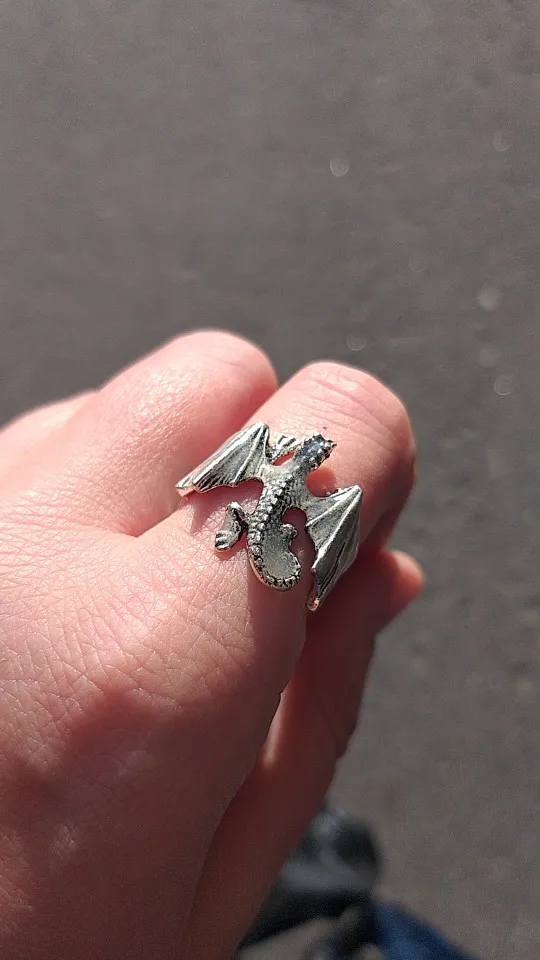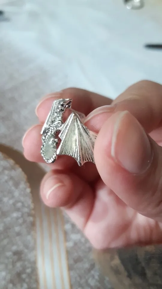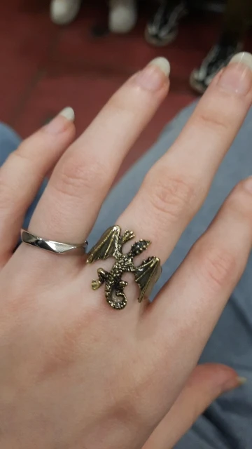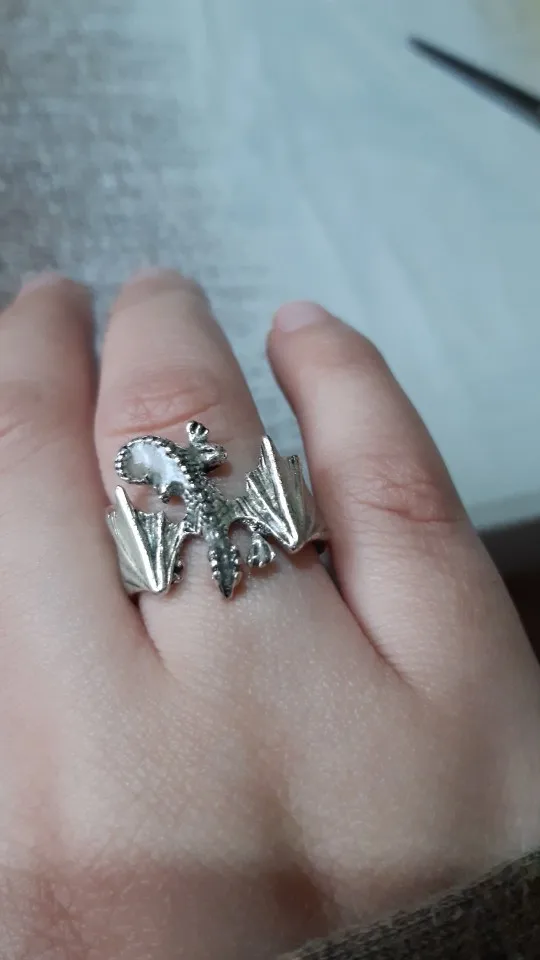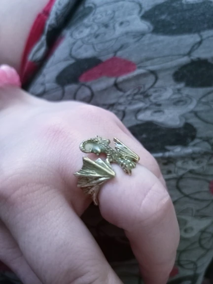 кольцо пришло в хорошем состоянии не поломано всё хорошо но дракон оказался светлым они тёмным как на картинке я хотела светится просто шикарно очень ярко даже даже днём мне очень понравился очень-очень ярко светит свет прям насыщенный очень легко изгибается кольцо безразмерное но я думаю если пару раз выставить разный размер кольца то крылышки отламаються как у скрепки например