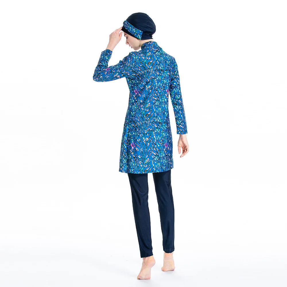 Размера плюс 4XL, мусульманская женская одежда для плавания, Burkini Мусульманский купальник с капюшоном, Цветочный купальник, одежда для серфинга, спортивный костюм для плавания, набор из 3 предметов