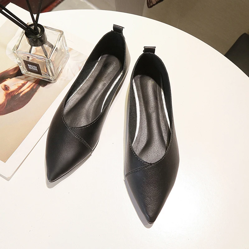 Весенние черные туфли из мягкой искусственной кожи женские балетки на плоской подошве с острым носком без застежки; Большие размеры 40; Женские лоферы; N600