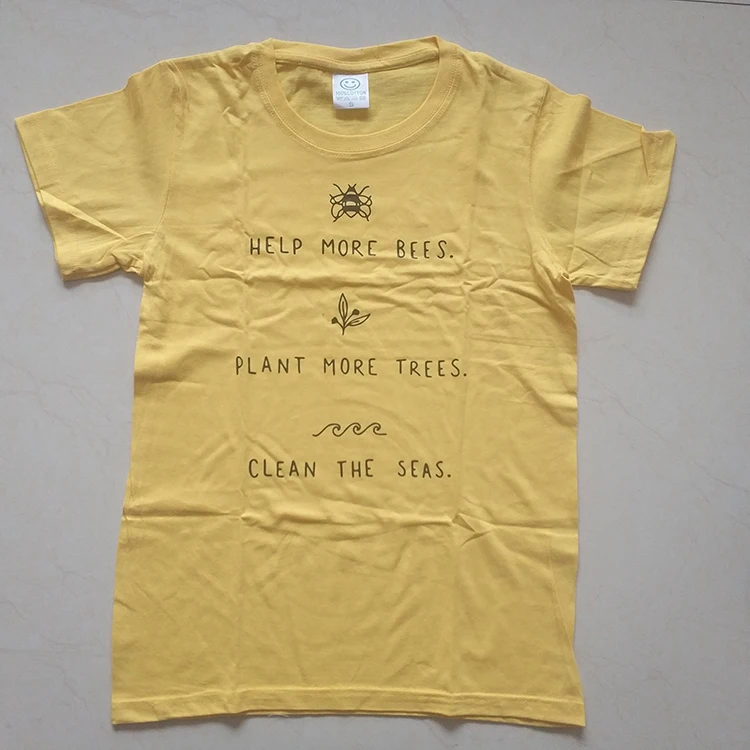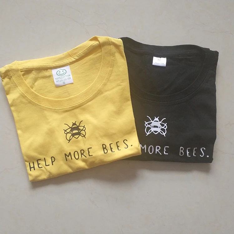 Женская футболка с круглым вырезом Help More Bees, желтая футболка с принтом в виде забавных букв растения больше деревьев для девочек, каваи