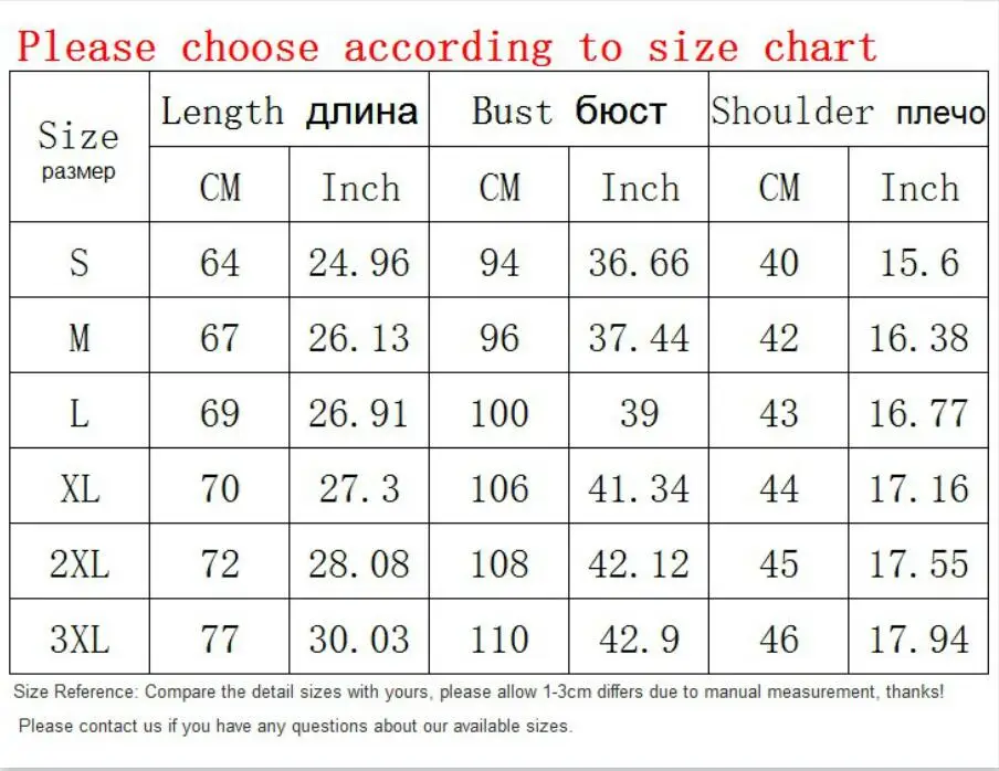 2. Таблица размеров предназначена только для справки с погрешностью измерений 1-3 см,