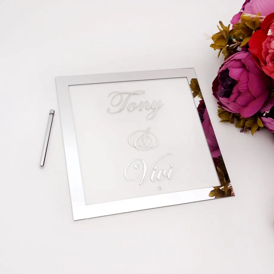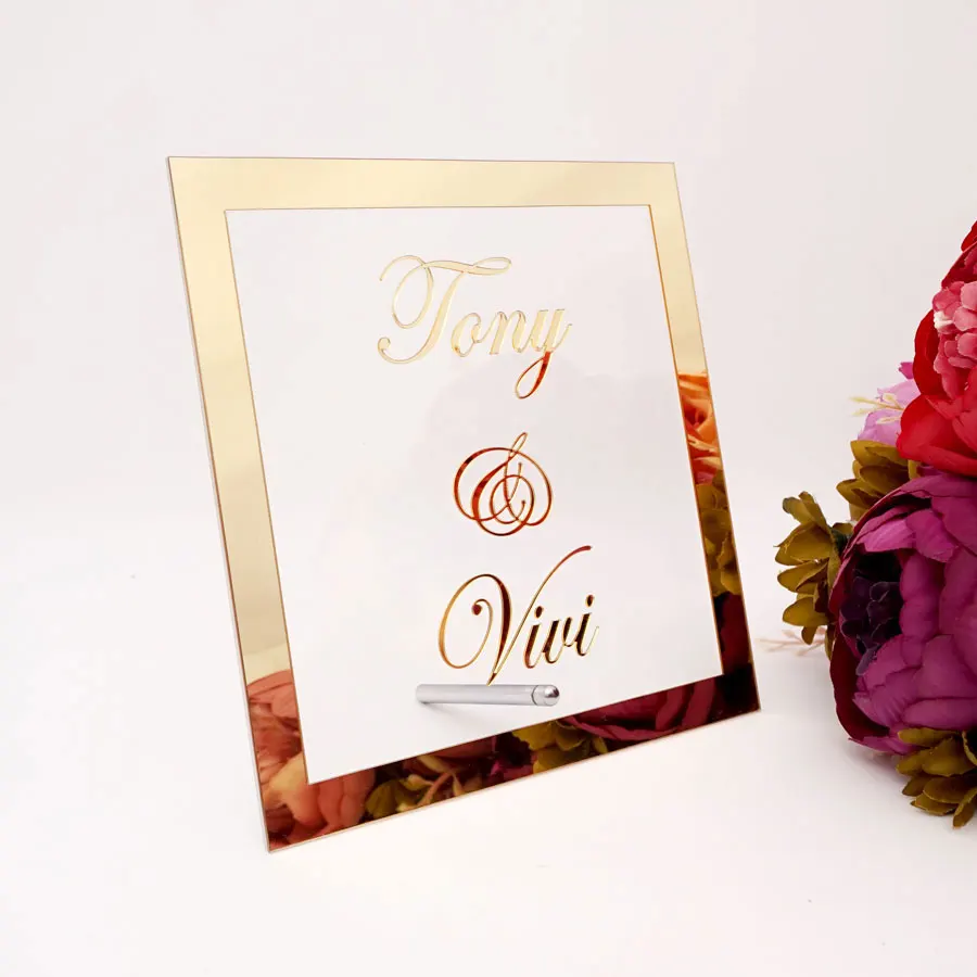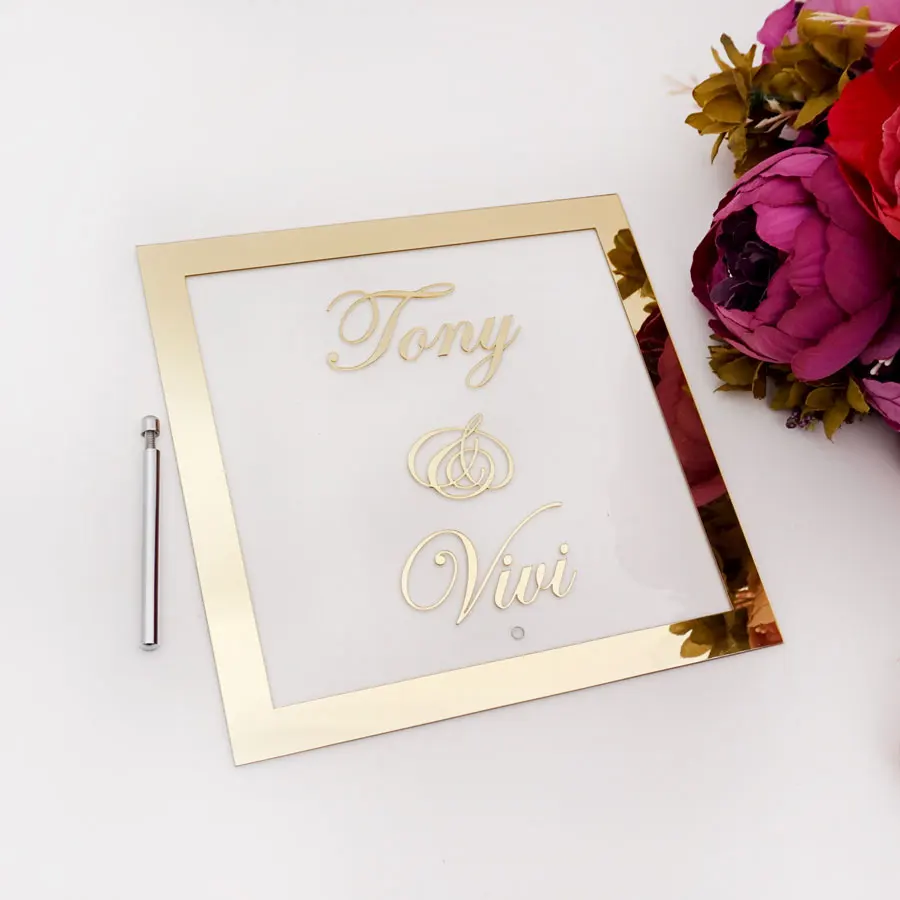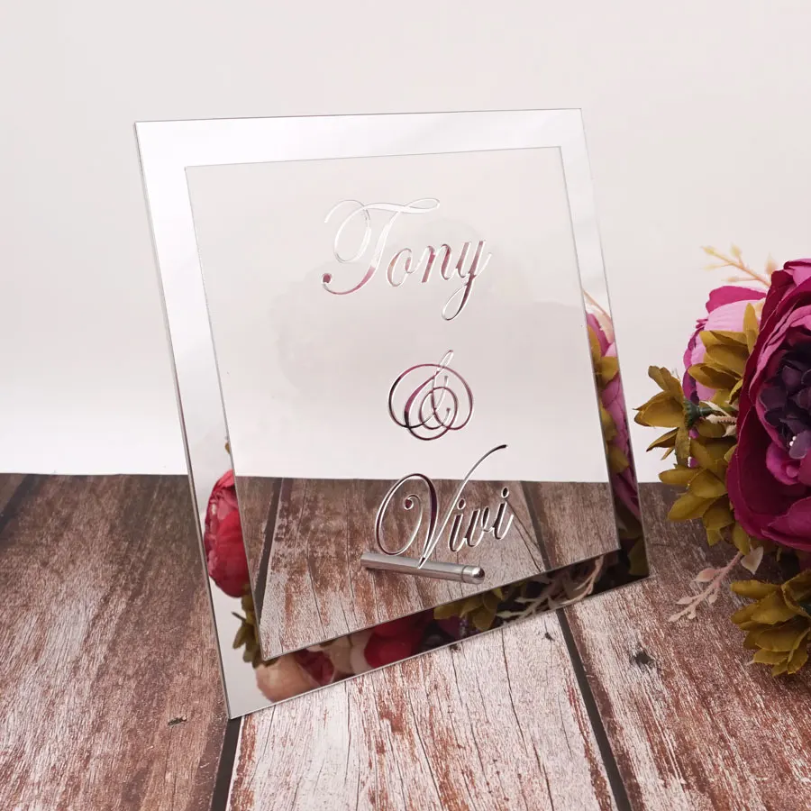 Пользовательские невесты жениха имя зеркальная рамка Свадебные вывески Персонализированные Прозрачные Акриловые таблички с ногтевой вечеринки Декор сувениры