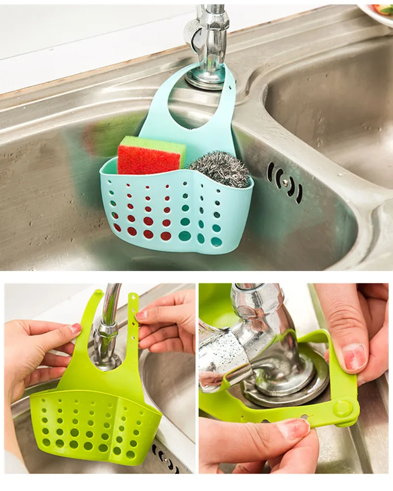 Можно повесить в кран для хранения губки, мочалки, бритвы, чистящих шариков, мыла и других мелких предметов.