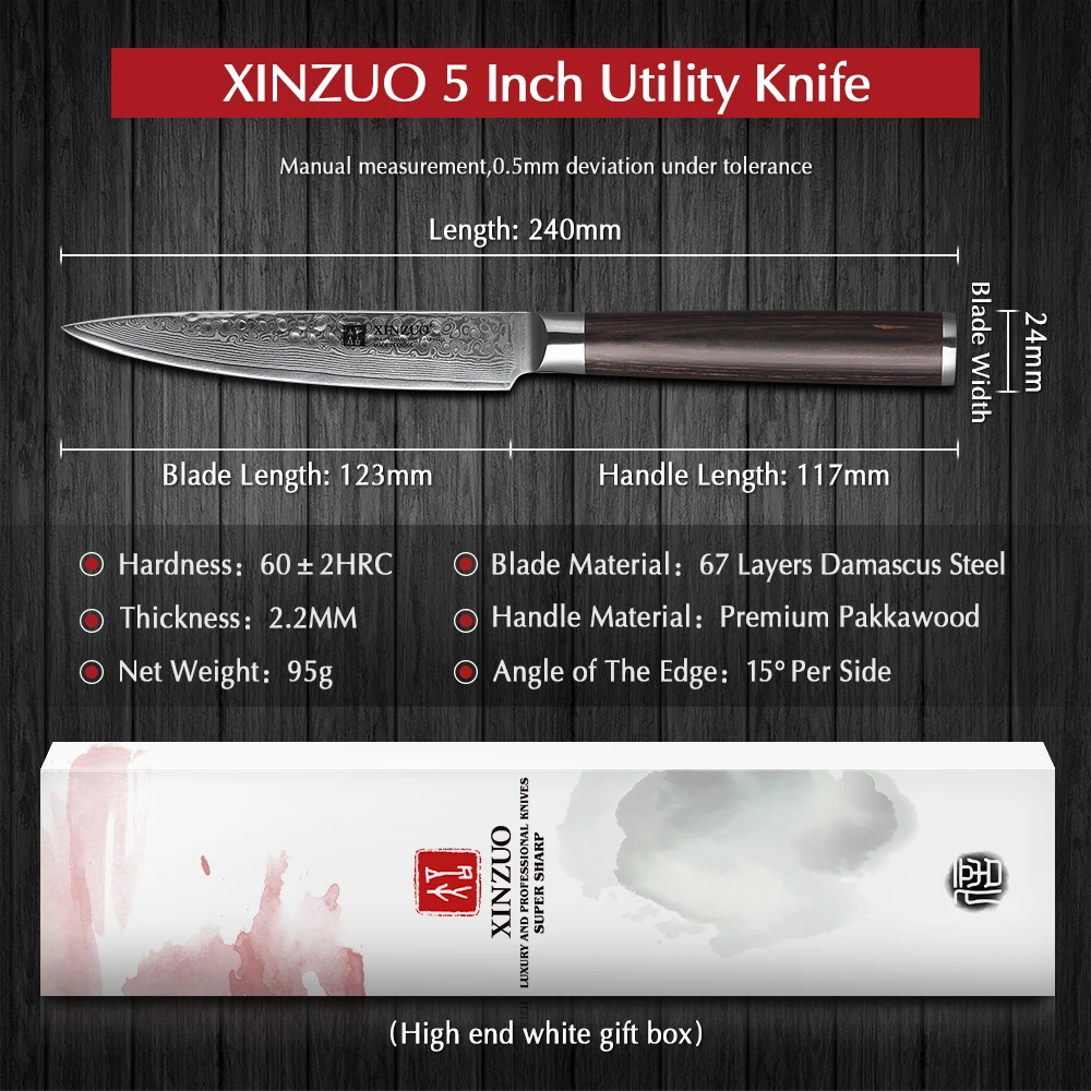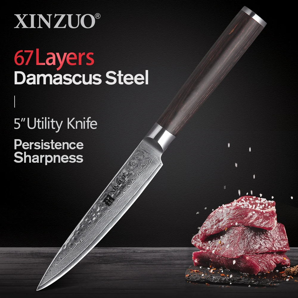 Универсальный нож XINZUO, 5 дюймов, кованая нержавеющая сталь VG10, японские кухонные ножи шеф-повара из дамасской стали, для очистки овощей, кухонные аксессуары