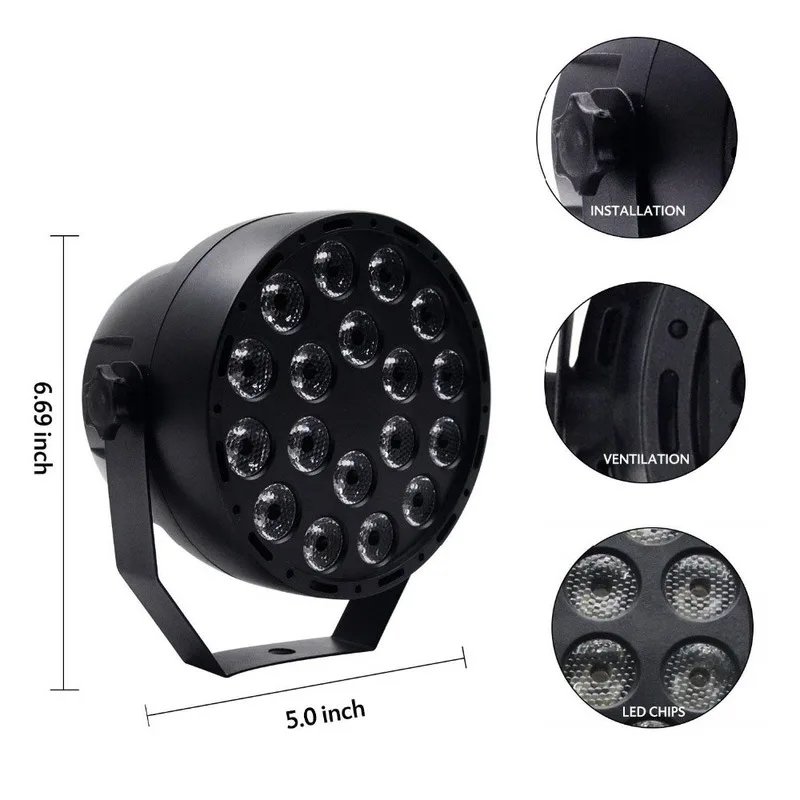 Вы хотите замечательное представление? Вы хотите быть суперзвездой в отличной сцене? Эта пара светодиодных мини-ламп мощностью 30 Вт с 18 светодиодами обеспечивает выдающийся сценический эффект RGB для впечатляющего визуального изображения. Выберите этот вид света, чтобы сделать вашу жизнь более яркой.