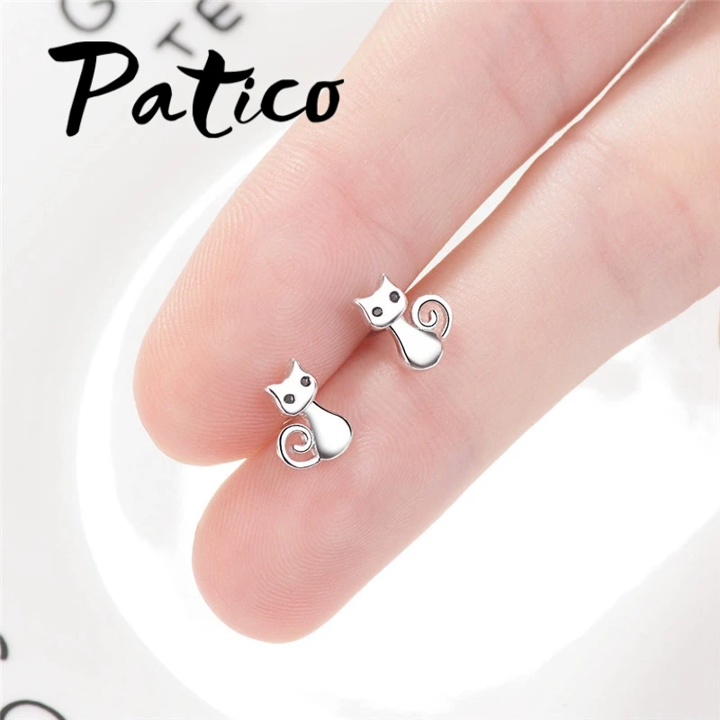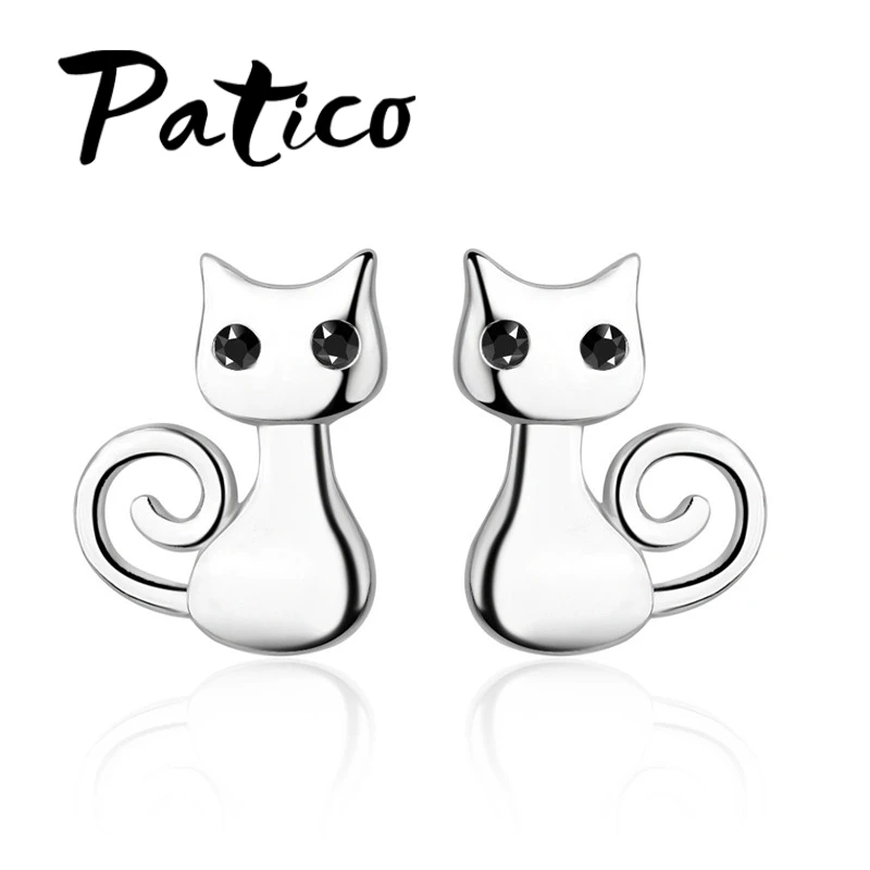 Серьги-гвоздики женские из серебра 925 пробы с кошачьими глазами