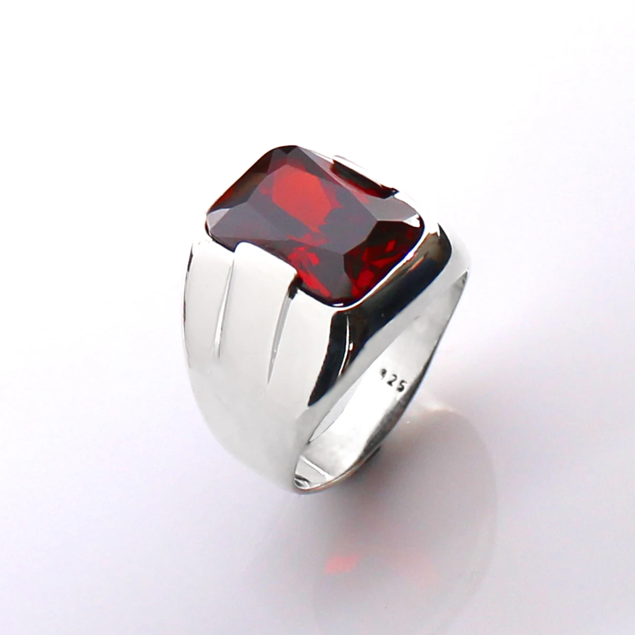 Мужское кольцо из серебра 925 пробы, с натуральным фианитом