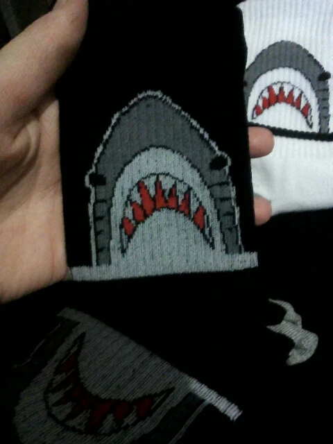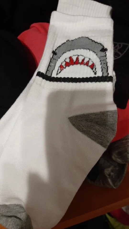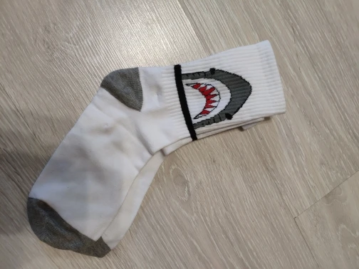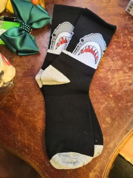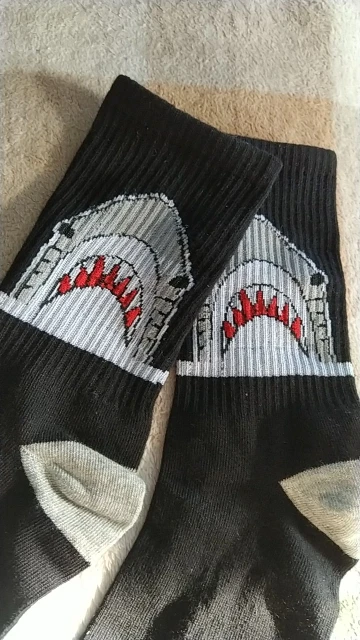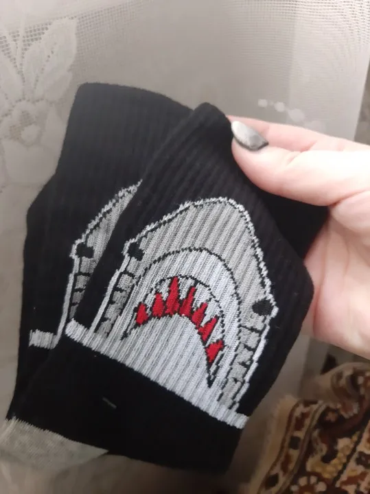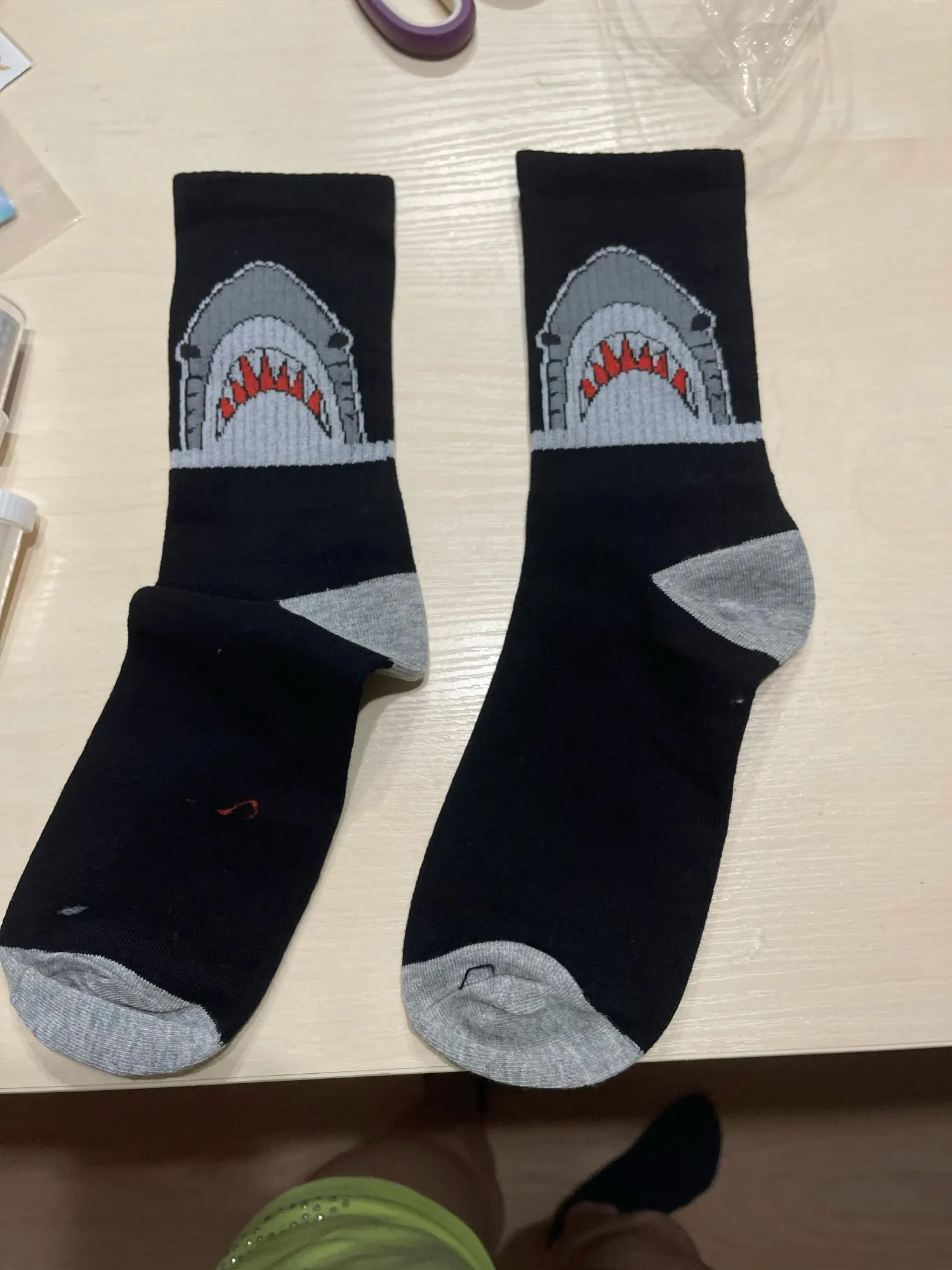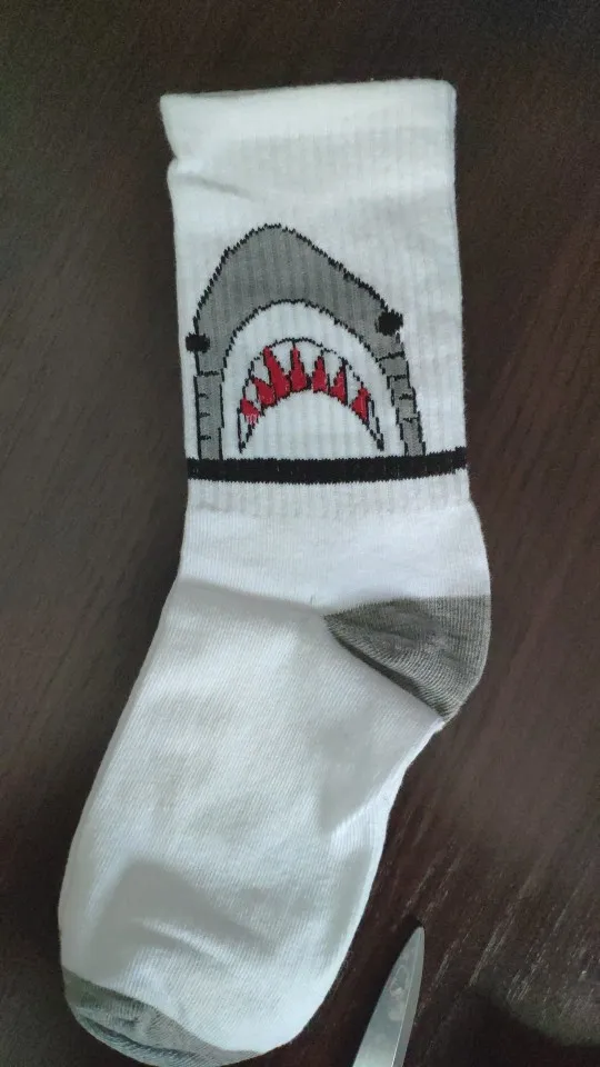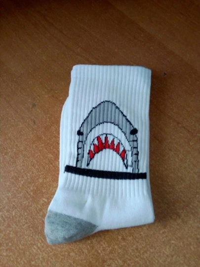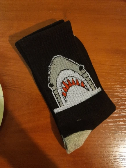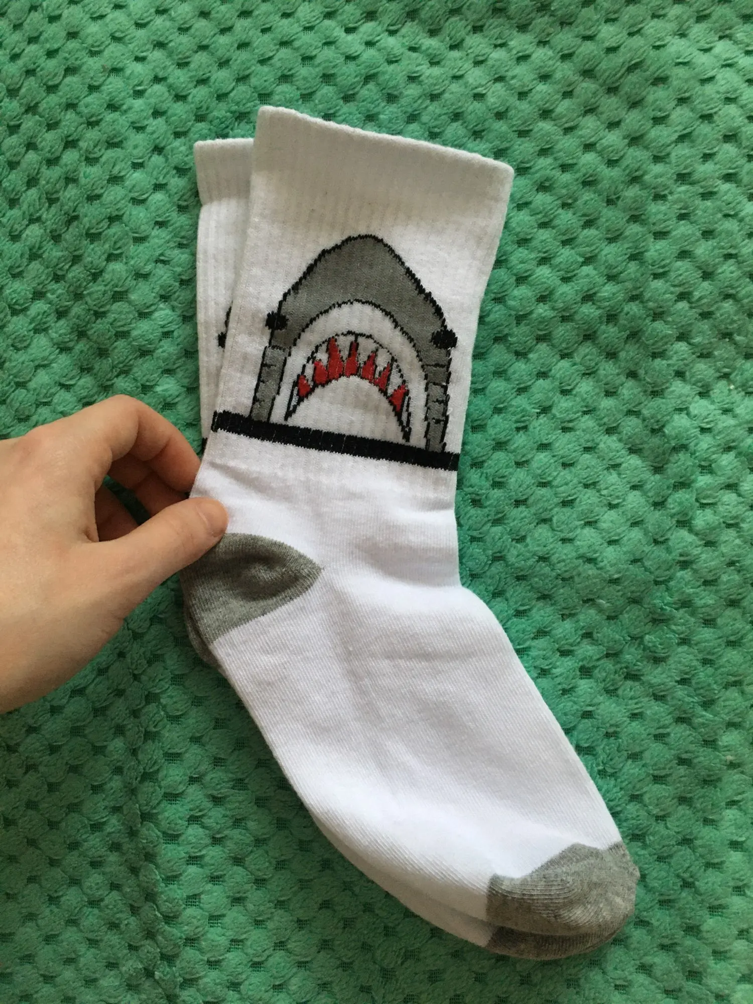 Носки с акулой очень круто смотрятся. Из минусов могу отметить только качество нанесенного рисунка, есть маленькие пробелы. Но это заметно, если только тщательно всматриваться, держа носки в рука