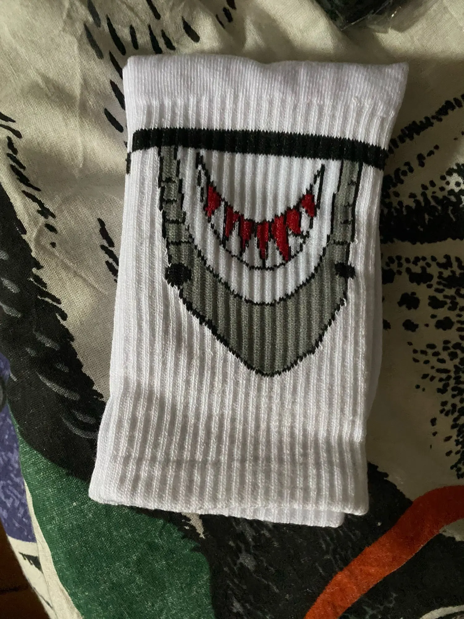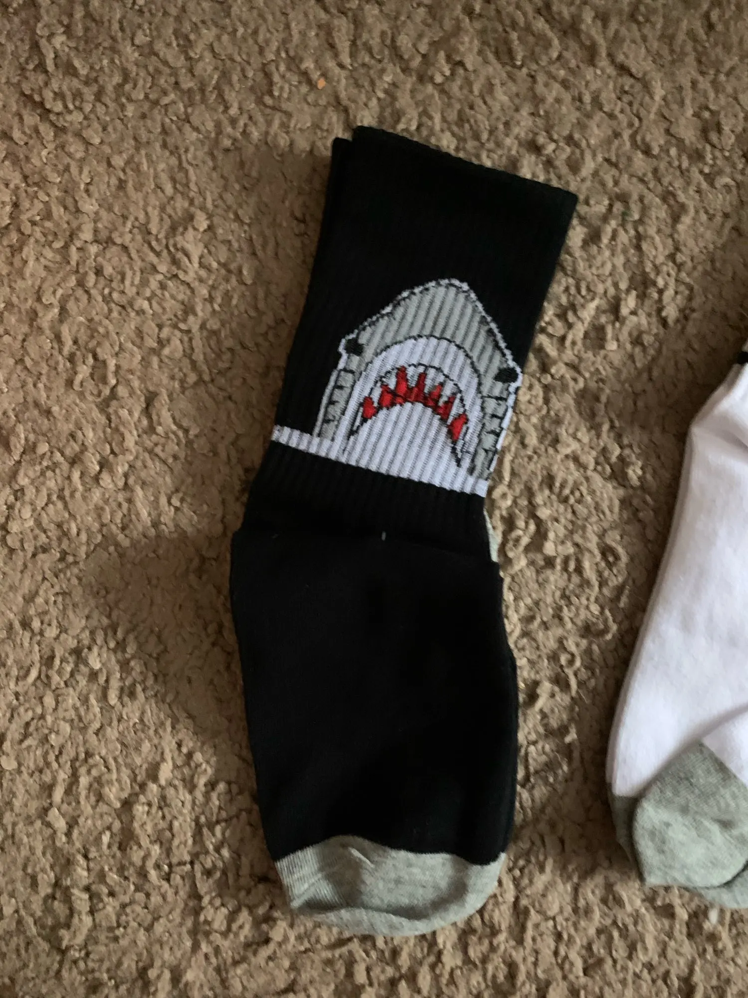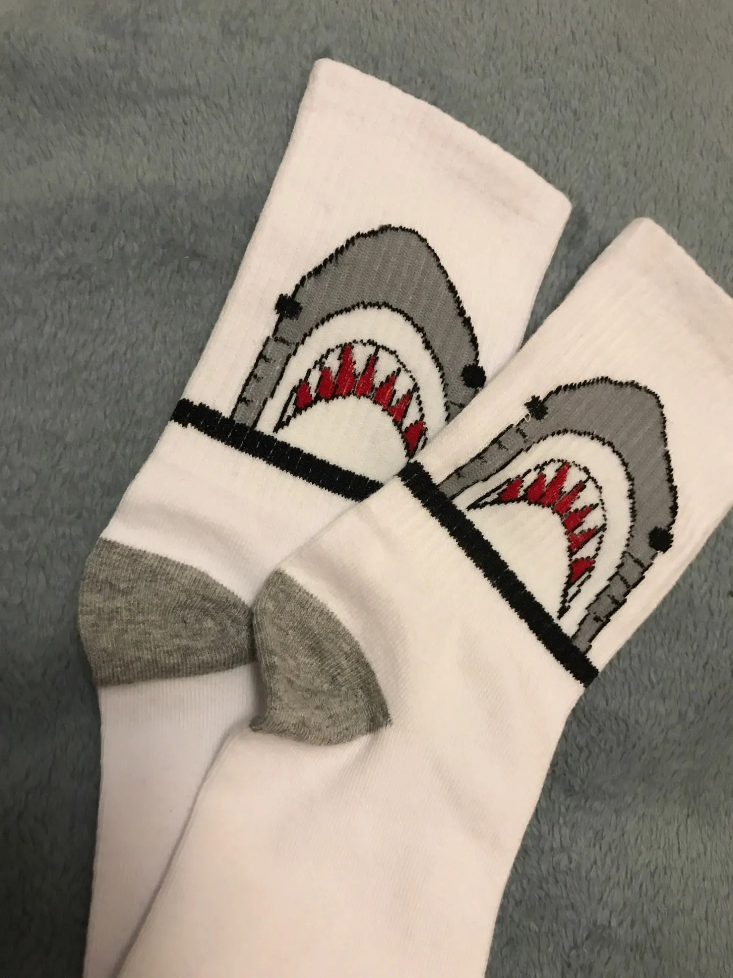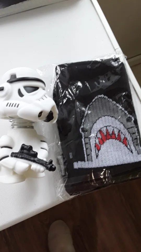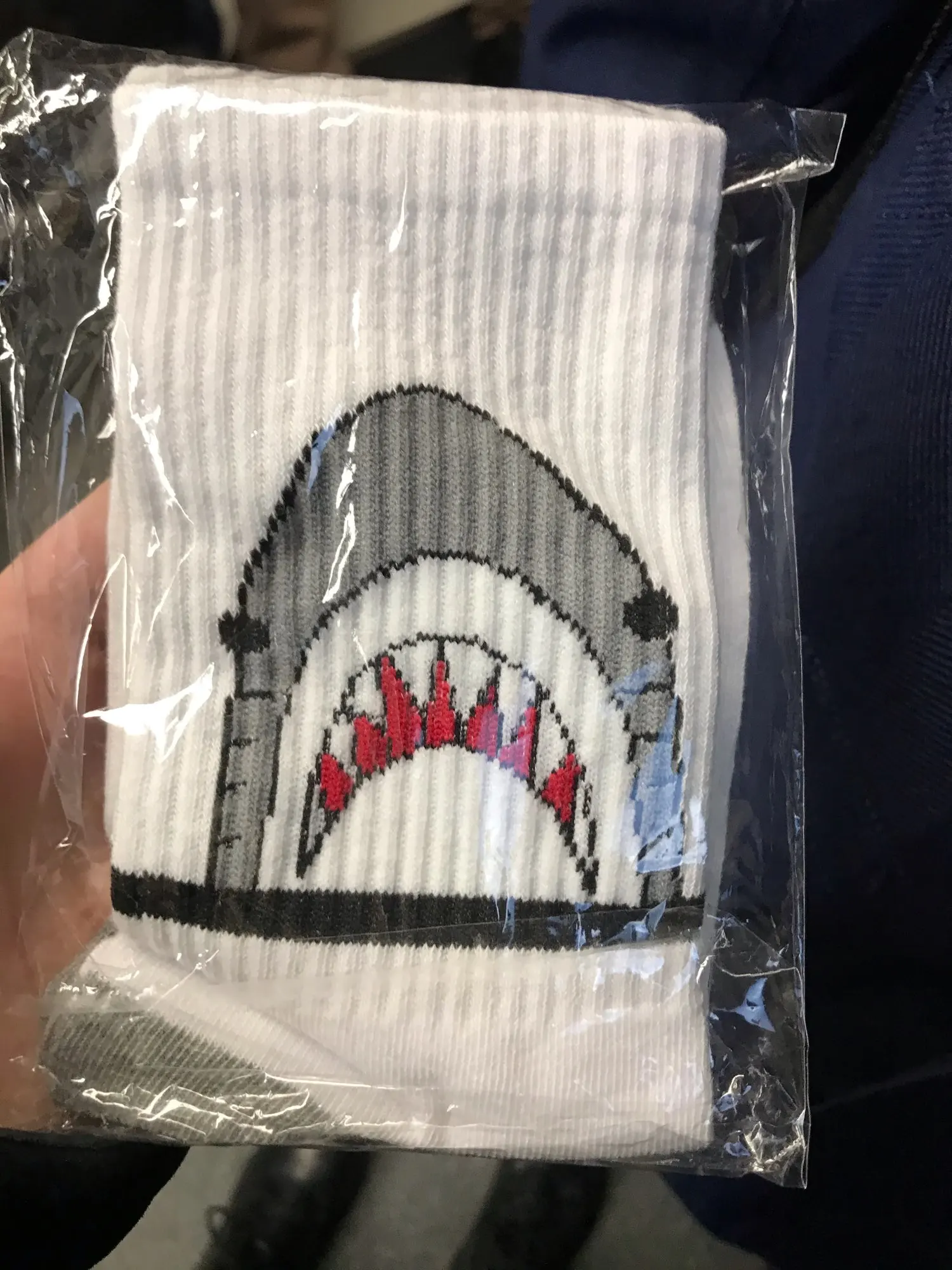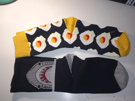 Носки с акулой очень круто смотрятся. Из минусов могу отметить только качество нанесенного рисунка, есть маленькие пробелы. Но это заметно, если только тщательно всматриваться, держа носки в рука