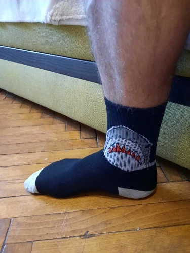 Не полное описание материала. В нем есть полиэстер или спандекс. По ощущению, будто сплошная синтетика. Хорошо тянутся, но одеваются туго. Ноги в них потеют через 1-1.5 часа ходьбы. Размер идеален. Подойдут 41 размеру. Пяточка к пяточке. Не сползают. Рисунок сильно не разтягивается. Шов прекрасный. Нитки-рисунка практически не чувствуются. Выглядят надёжными. Свою цену они стоят. В Москву пришли примерно за 18 дней.