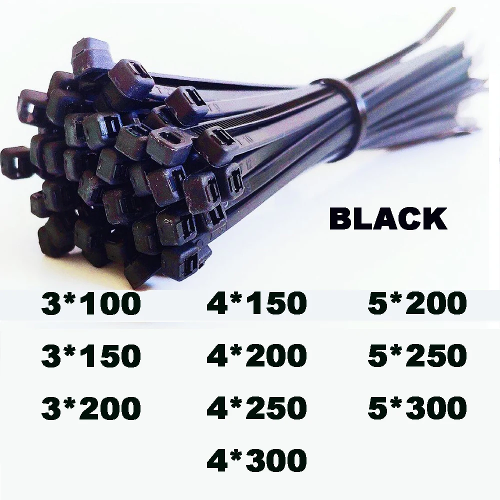 Самоблокирующиеся Кабельные стяжки, пластиковые нейлоновые стяжки для проводов, кабельные стяжки 3*100 3*150 3*200 4*150 4*200 мм, 100 шт., нейлоновые стяжки, крепежные петли для кабеля