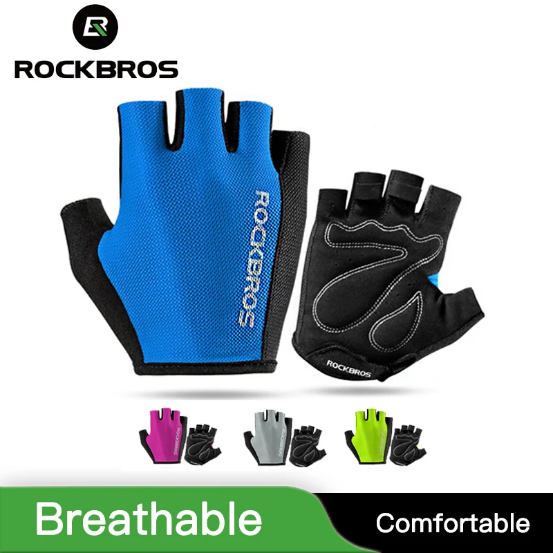 Велосипедные перчатки ROCKBROS, дышащие спортивные митенки с губкой, на полпальца, для улицы, для мужчин