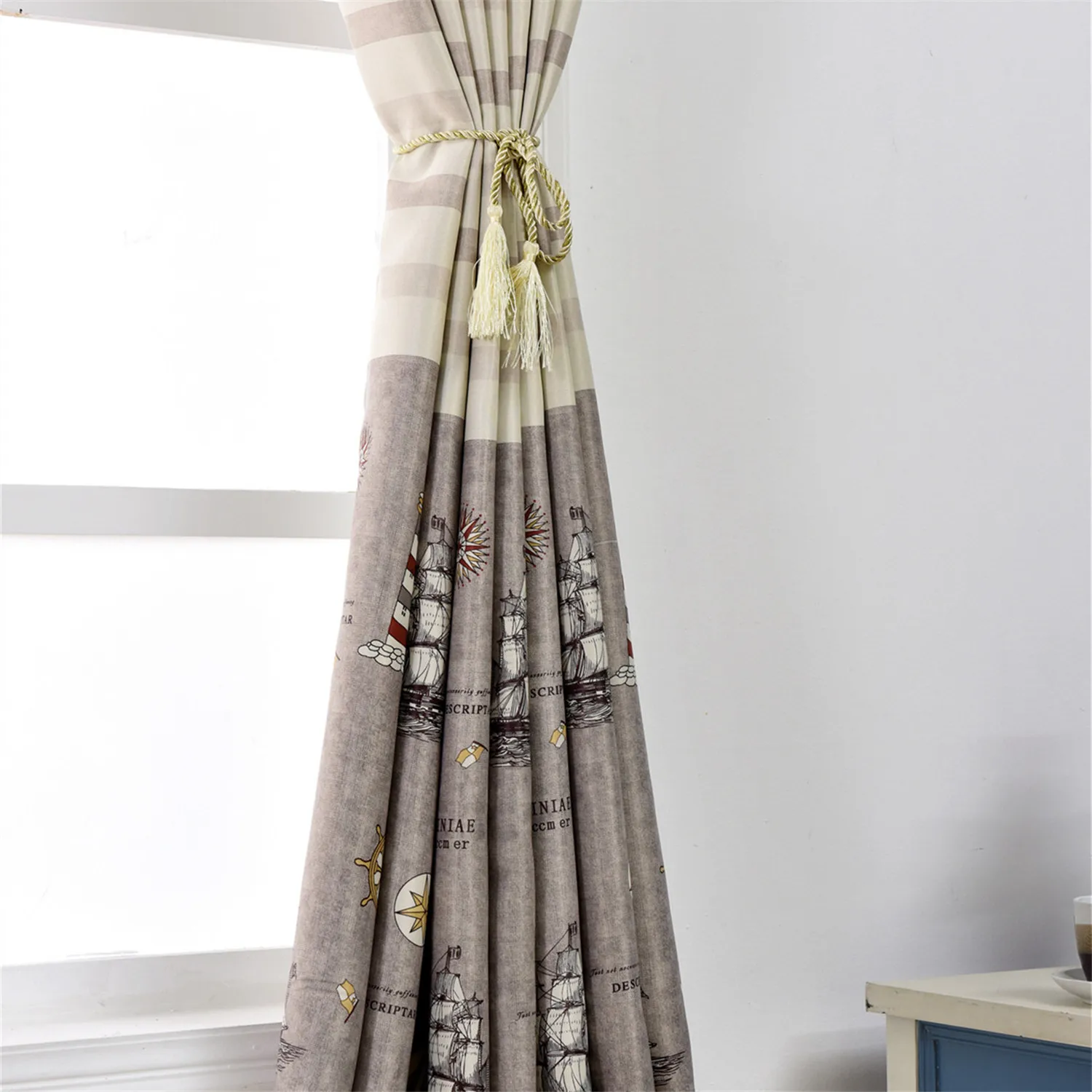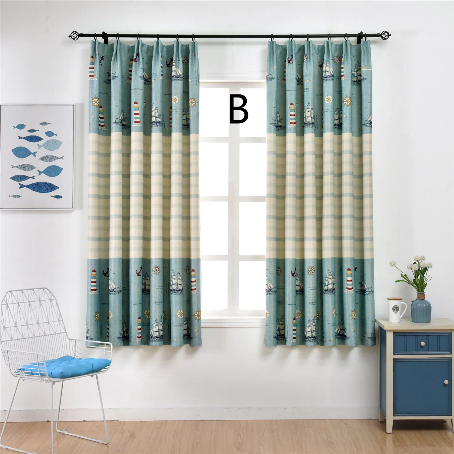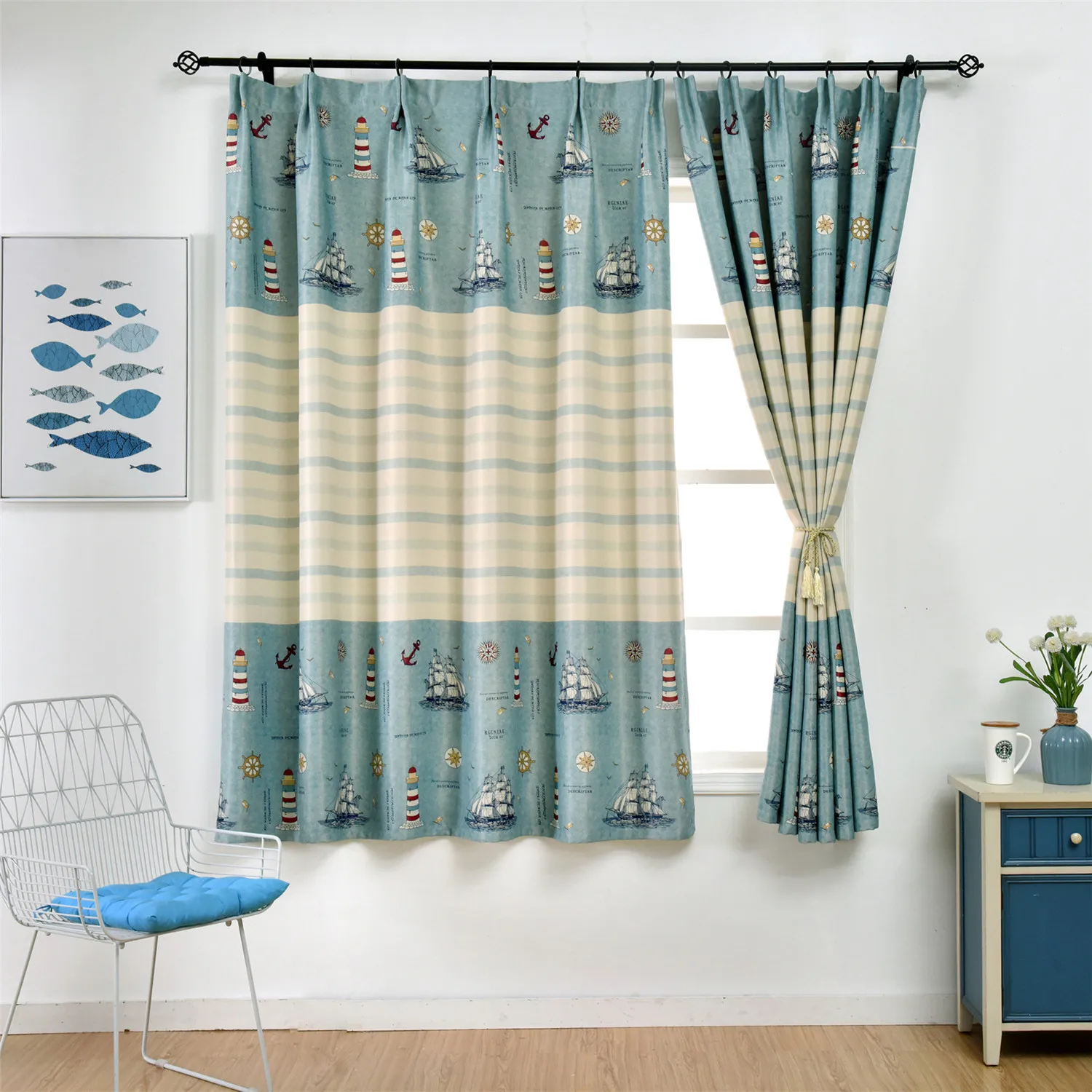 Плотные Роскошные детские шторы с принтом парусника, рыбы для гости...