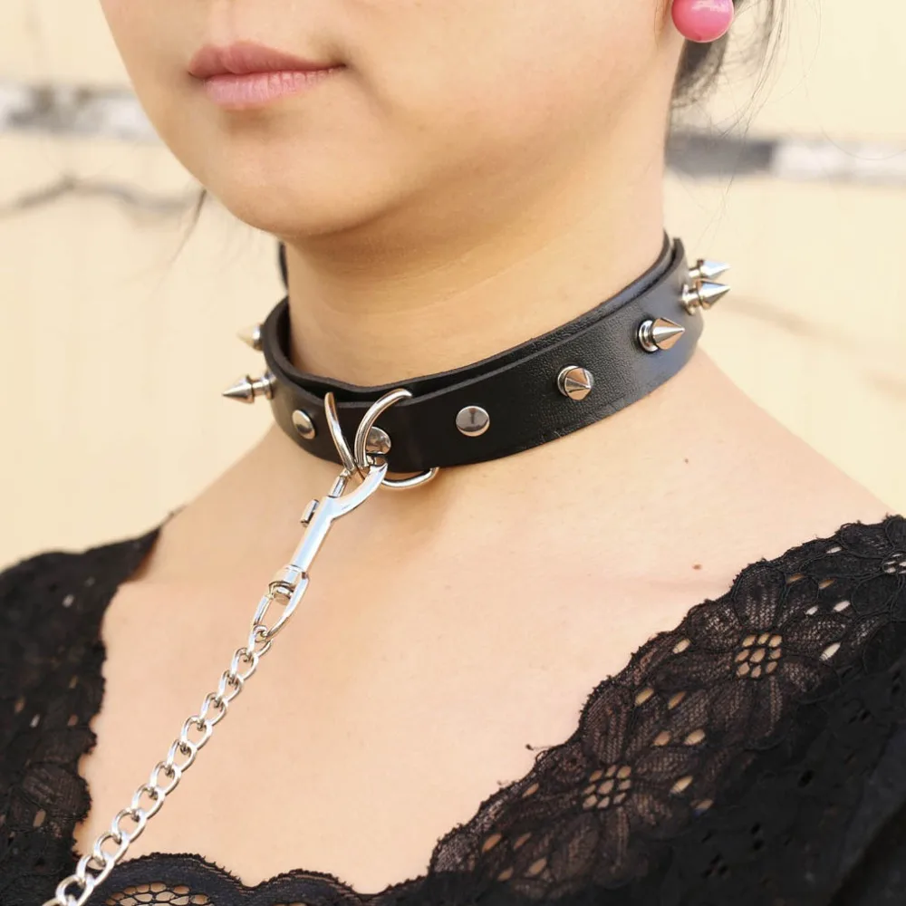 Панк готика Сексуальные Металлические заклепки альтернативный раб из искусственной кожи воротник Тяговая веревка, БДСМ ожерелье-бондаж шея, секс-игрушки