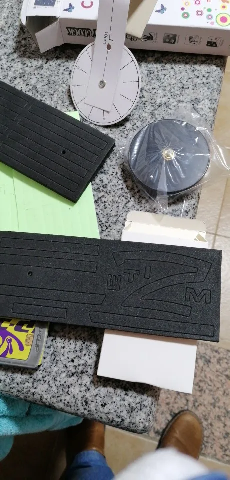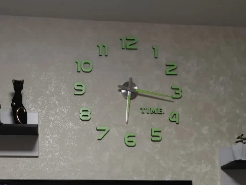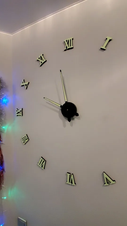 Качественная упаковка и быстрая доставка. Все промежуточные шаги по инсталляции часов хорошо объяснены, да и на интуитивном уровне можно всё самому додуматься. И середина и цифры крепко клеются к стене, даже от шершавых обоев отрываются с силой, так что желательно сразу клеить точно. Вспомогательная линейка с с нанесенными сантиметрами и часами очень сильно помогла. Не торопясь клеил где-то 45 минут.