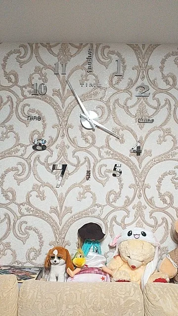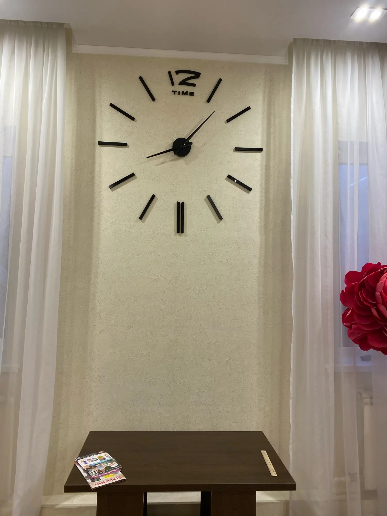 отличные часы, стоят своих денег. на пол стены. очень нравится. надеюсь прослужат долго) клеить очень легко и просто)