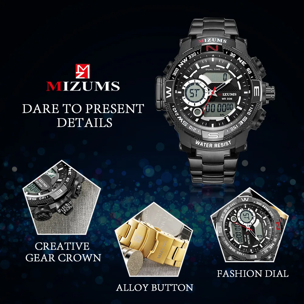 2019 мужские часы Mizums, светодиодный спортивные часы, водонепроницаемые кварцевые цифровые аналоговые наручные часы, мужские военные часы, армейские