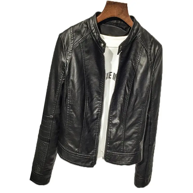 Куртка женская кожаная на молнии, с длинным рукавом и карманами, батальных размеров