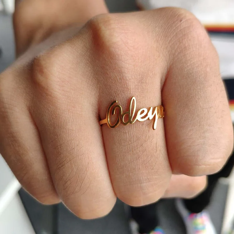 Изящное пользовательское имя кольцо Bijoux обычай слово кольцо из нержавеющей стали персонализированные имя кольцо Femme штабелирование имя кольца в Золотой Серебряный