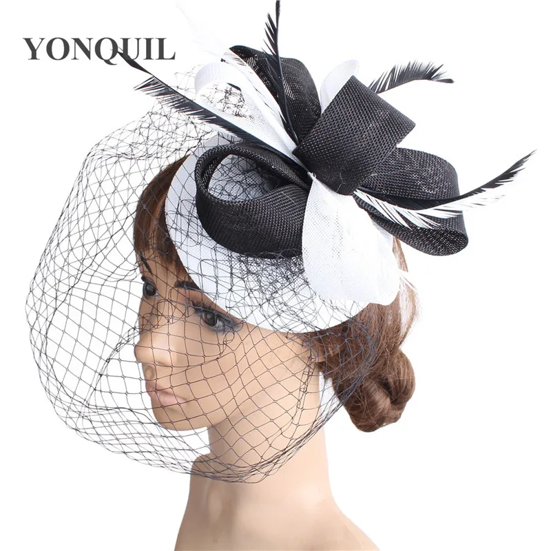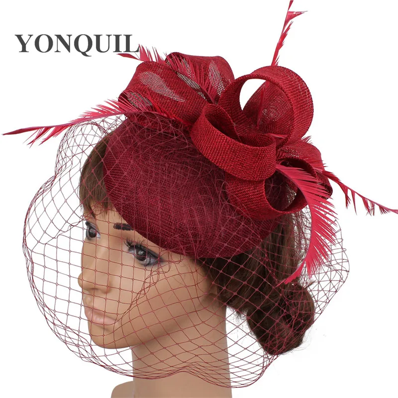 Бирюзовый Классический сетчатый обруч для волос, ободок, котелок с перьями, свадебная вуаль, Свадебная вечеринка, новый зажим для волос SYF567