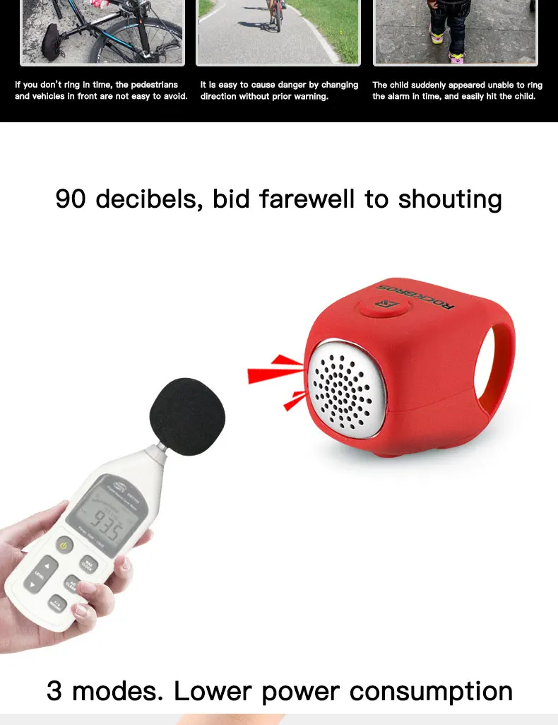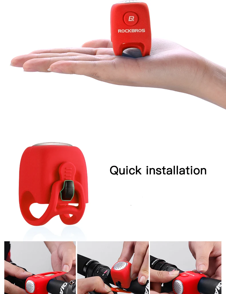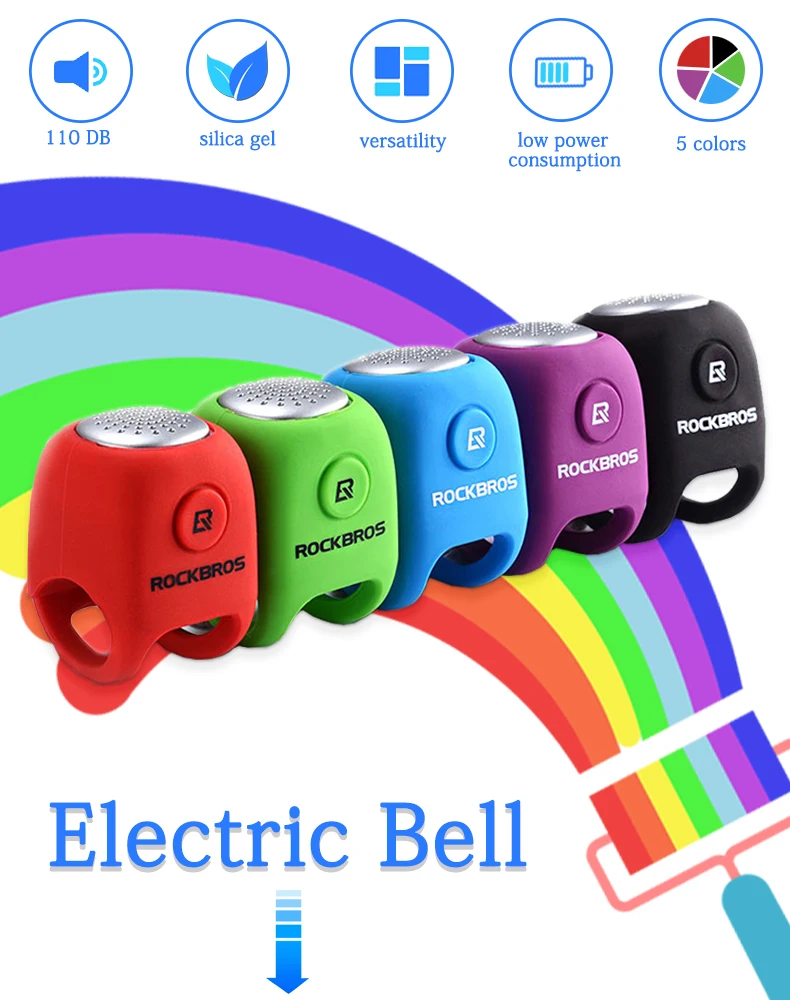 Звонок велосипедный ROCKBROS Электрический с силиконовым покрытием, 110 дБ