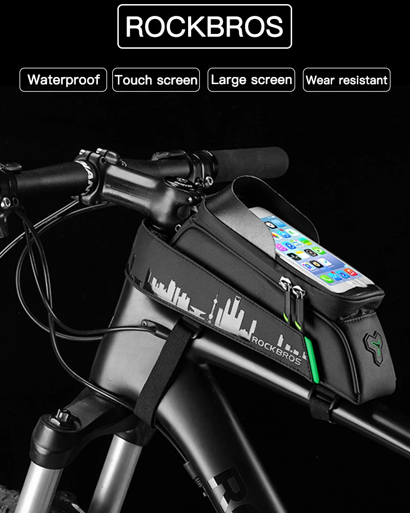 Велосипедная сумка ROCKBROS, Водонепроницаемая передняя Велосумка на раму с поддержкой сенсорного экрана, для телефона, велосипедные аксессуары