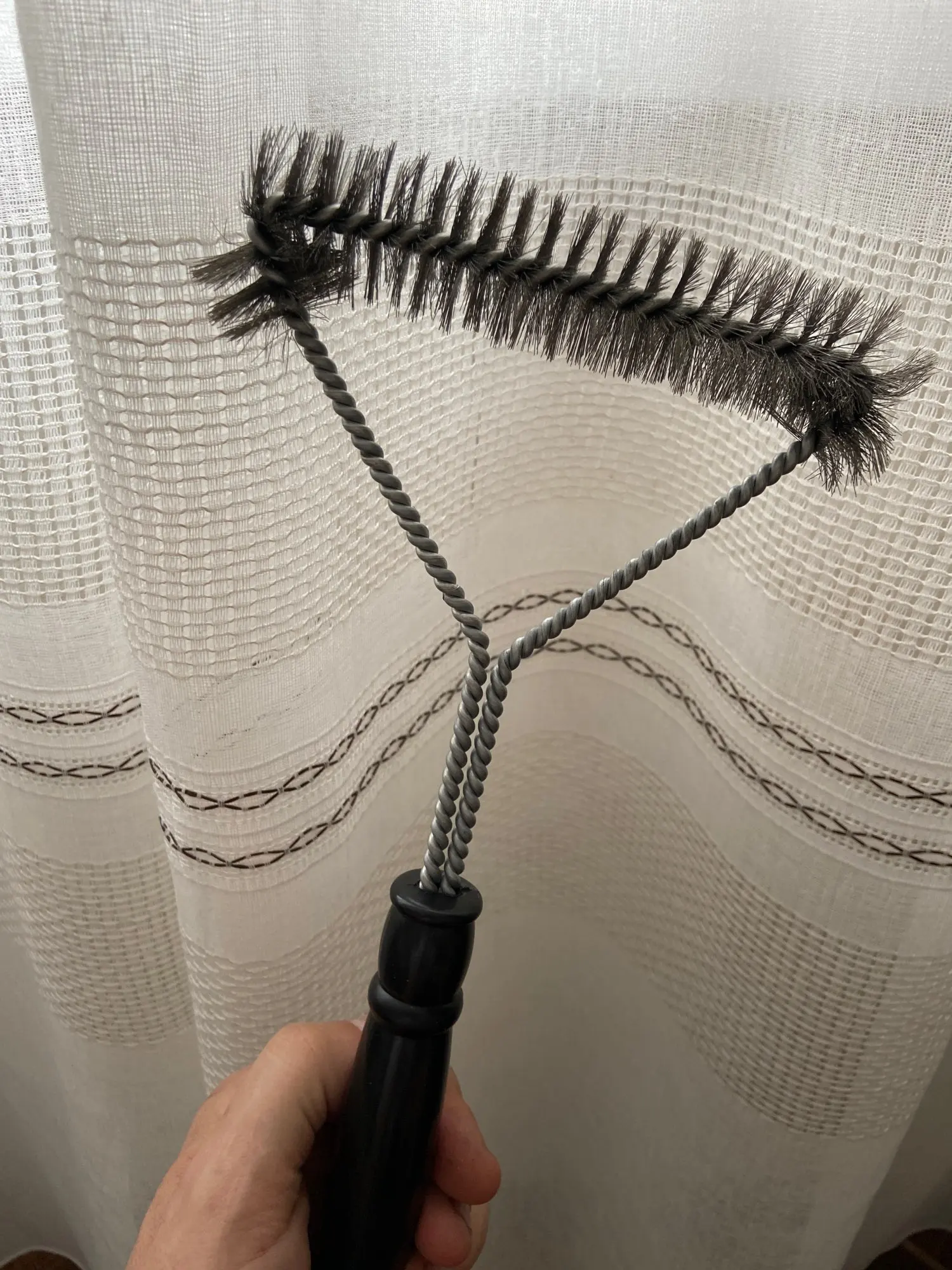 Удобная щётка для гриль. Со своей функцией справляется и описанию соответсвует. Щетка довольно колючая.