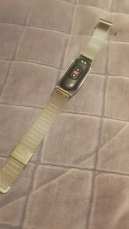 за три тижні використання товаром склалася певна думка про товар. отримав спільну посилку об'єднану від двох магазинів. браслет був у картонній коробці, в коробці ущільнювачі на mi band 3/4 та 5й, по два кожного. використовуючи маленьку викрутку, що була в комплекті налаштував довжину ланцюжка під себе. трохи довелося наловчитися закривати замок. за час використання вже помітні потертості фарбового покриття.