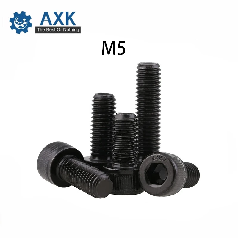 DIN912 Метрическая резьба M5 черная класс 12,9 легированная стальБолты с шестигранной головкой, круглые болты M5 *(6/8/10/12/14/15/16/18/20/22/25 ~ 60) мм