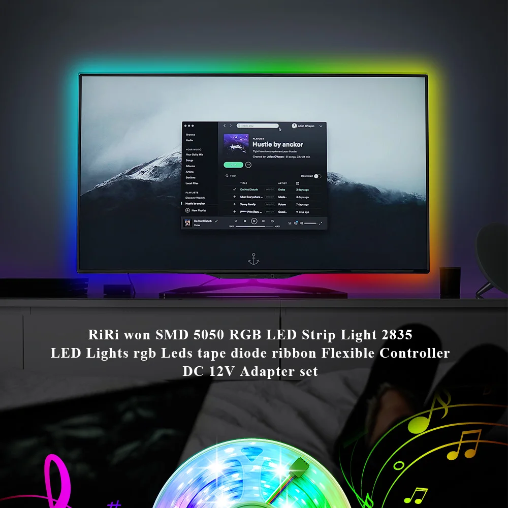 Светодиодная ленсветильник 5-30 м 5050 RGB гибсветодиодный Светодиодная лента украшение комнаты неоновые лампы Набор диодов Настенная подсветка с адаптером