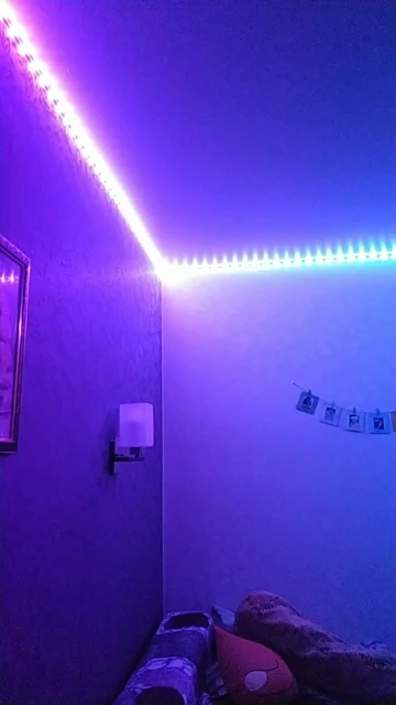 Недостатки: 1.Белого нету! Если кому-то нужен хороший белый, то это так-себе вариант, он светит каким-то зеленоватым оттенком. 2. Пульт включает с расстояния 1-2м при точном попадании пультом в кончик ленты. Случайно все ленты (если их несколько в комнате), точно не включишь, надо подходить и тыкать пультом. 3. Из 4х лент, одну приложение не распознает. 4. Музыкальный режим - говно, звук идет через мобильник и блютус в ленту, соответственно нехило запаздывает, поэтому мигание выглядит хаотично, а не под музыку. Достоинства: 1.Супербыстрая доставка, просто нереал. 2 Приложение работает хорошо, с достаточного расстояния 3. В целом светят хорошо, можно украсить квартиру. топ за свои деньги.
