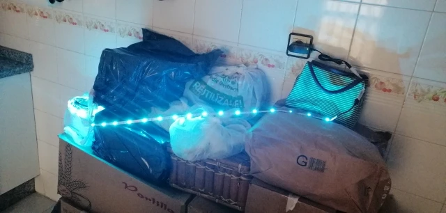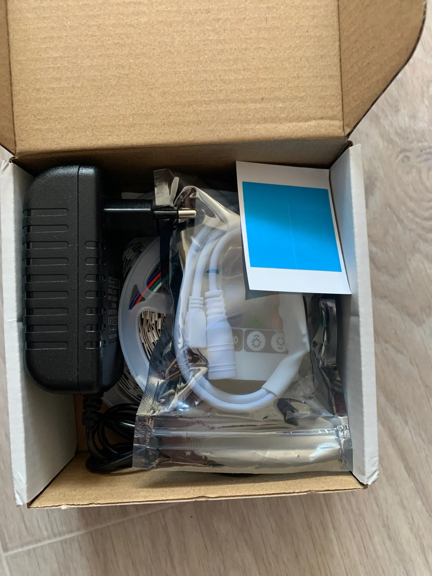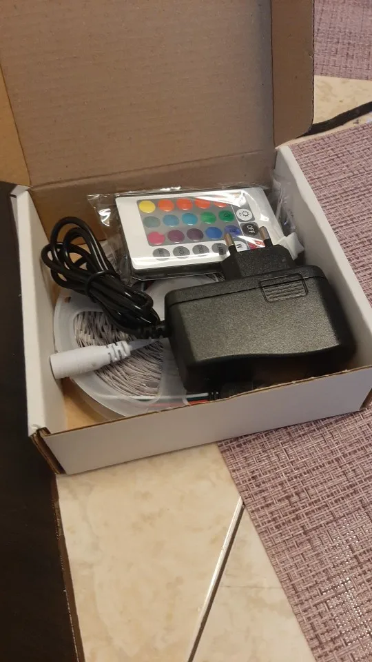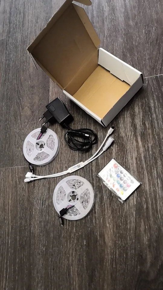 Перемещение по картону, но светодиоды прибыли в очень хорошем состоянии, хорошая яркость 15 метров. Управление по bluetooth действительно простое и быстрое, я рекомендую украсить большие длины! (Светодиоды расположены на расстоянии 55 мм)
