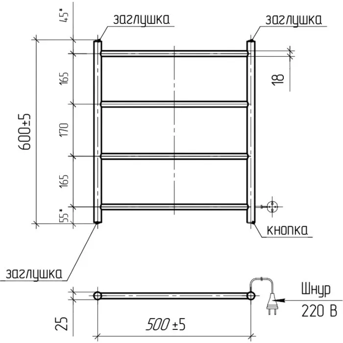 полотенцесушитель, крепление к стене-4шт., шнур электропитания с вилкой, инструкция