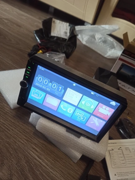 пришла посылка,забрал на почте,коробка была помятая,но внутри все целое,упаковано внутри хорошо. в комплекте шла камера заднего вида,пульт,провода ( но они не понадобились,у нас подошли провода от старого автомагнитола),инструкция на русском языке отсутствует,сама магнитола в защитной пленке экран,подключили ее за 5 минут,по размерам подошла,только вот к сожалению без рамки подошла,с рамкой не влазит. Подключил всё работает отлично,поставил русский язык,меню удобное,подключил к телефону ( но пришлось скачать на телефон специальное приложение,но это тоже заняло всего лишь 2 минуты и готово). Покупкой очень доволен,товар рекомендую и продавца тоже камеру заднего вида подключу в ближайшее время и дополню отзыв о ней
