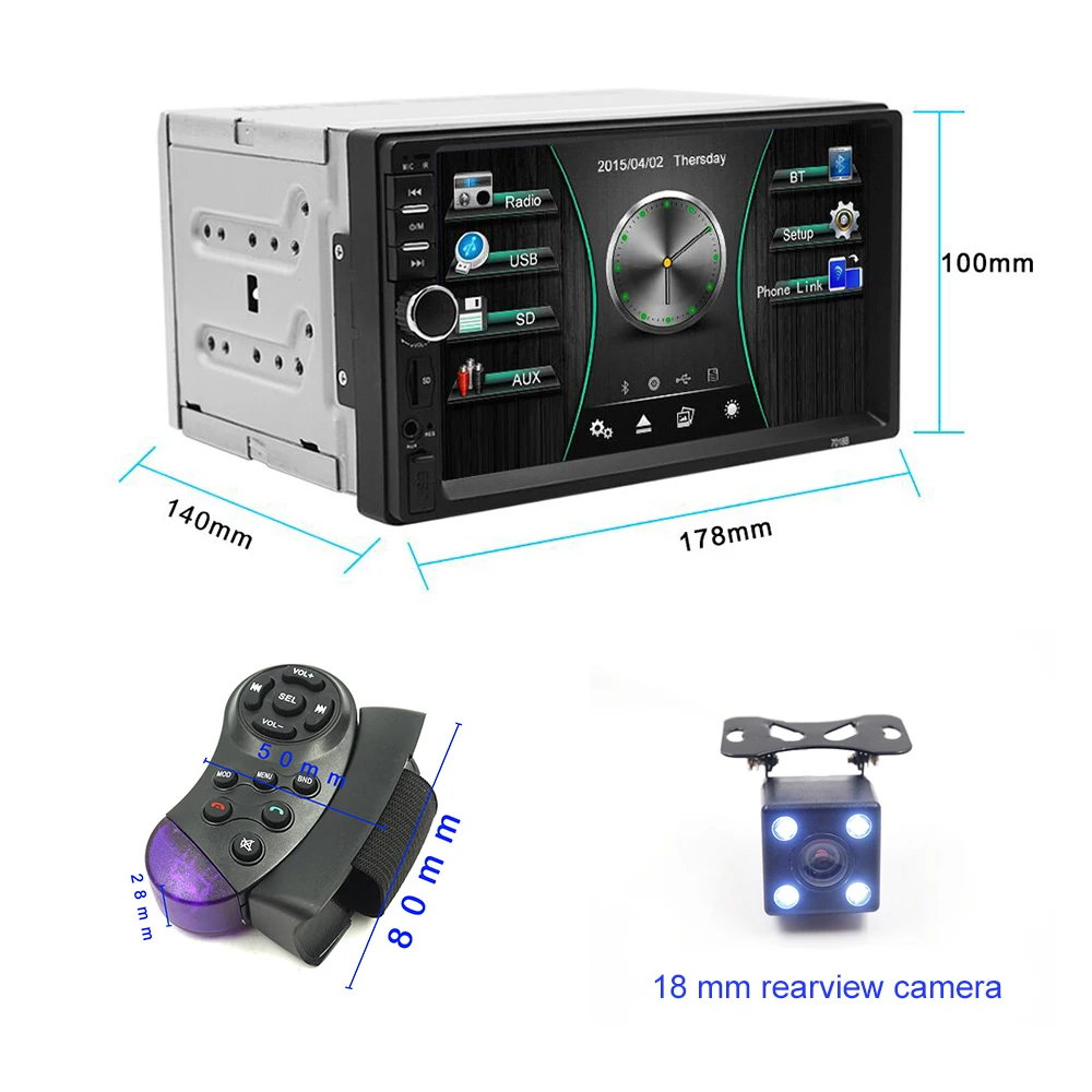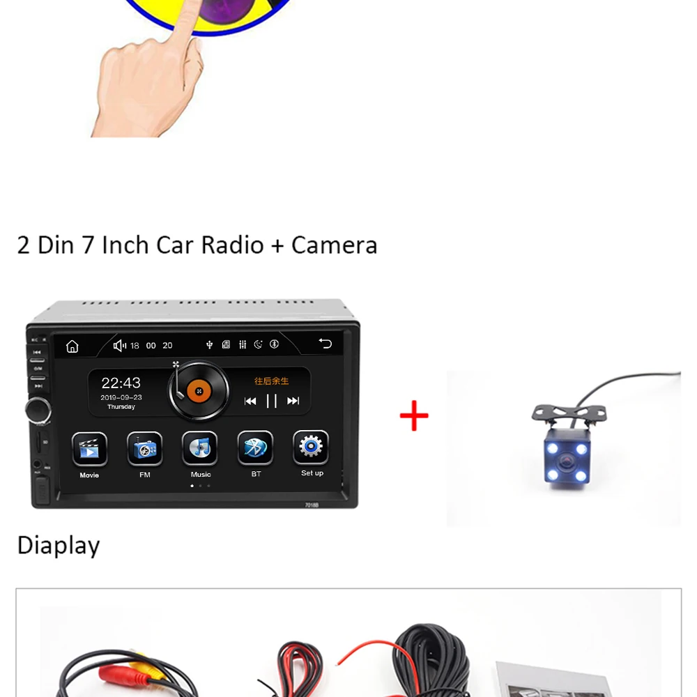 Автомагнитола Carsanbo 2 Din, 7-дюймовый сенсорный экран, стерео приемник, Bluetooth, FM, mp5-плеер, SD USB, с камеройбез нее