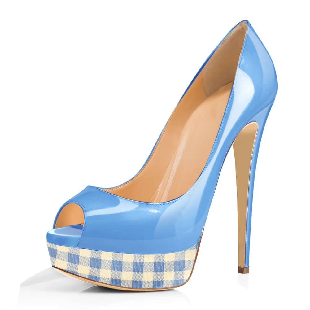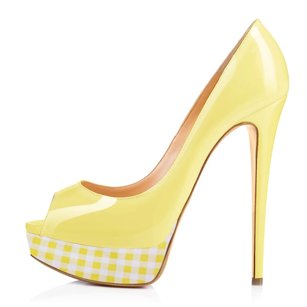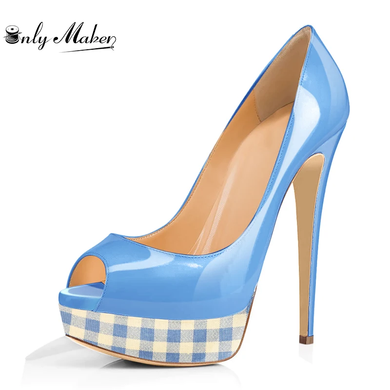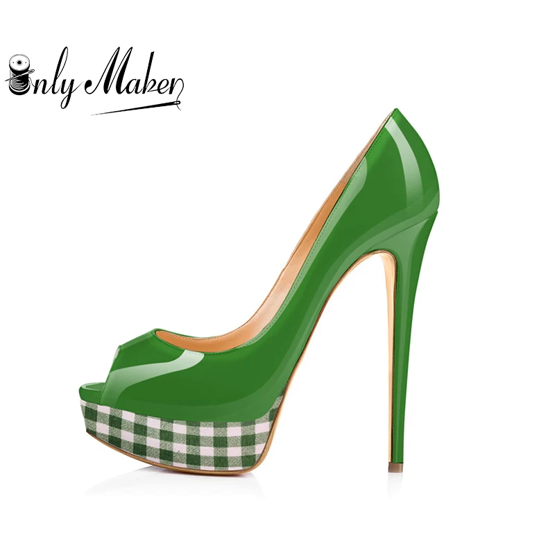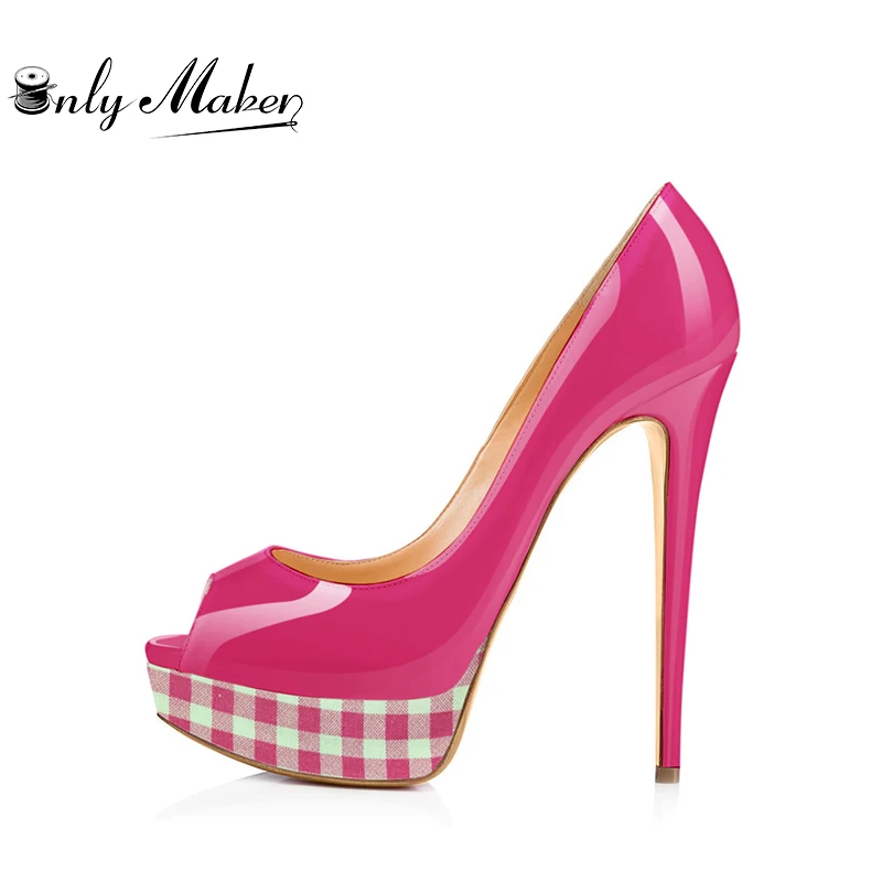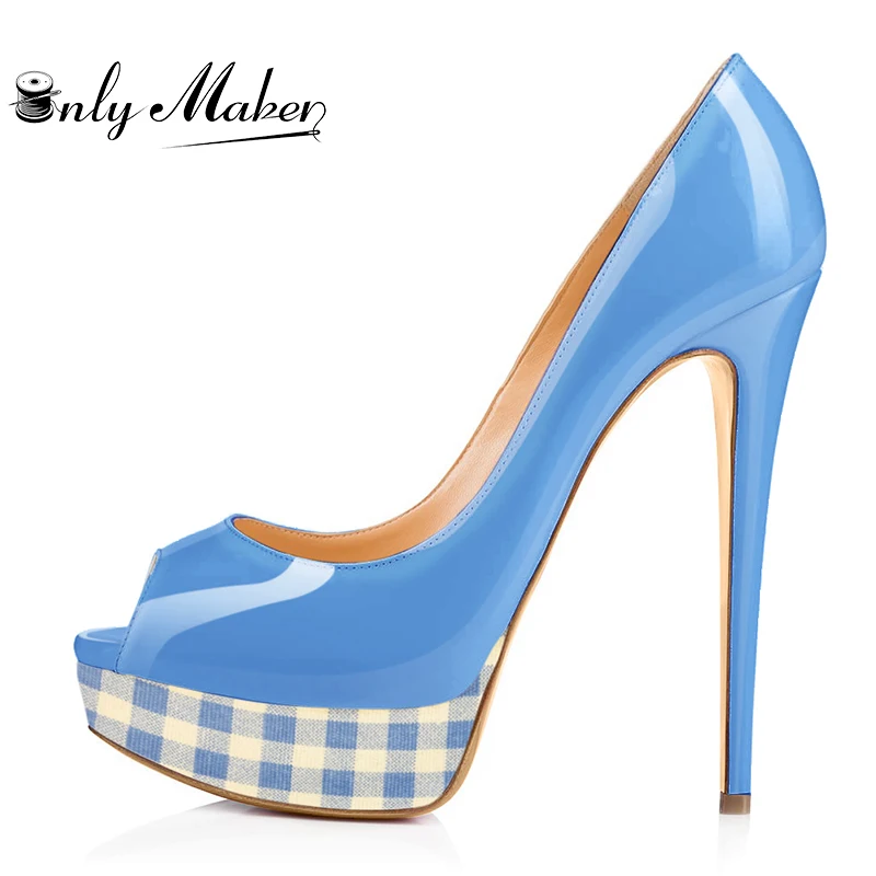 Женские босоножки Onlymaker, из лакированной кожи, на очень высоком каблуке 15-16 см, в клетку, на платформе, с открытым носком, размер 13