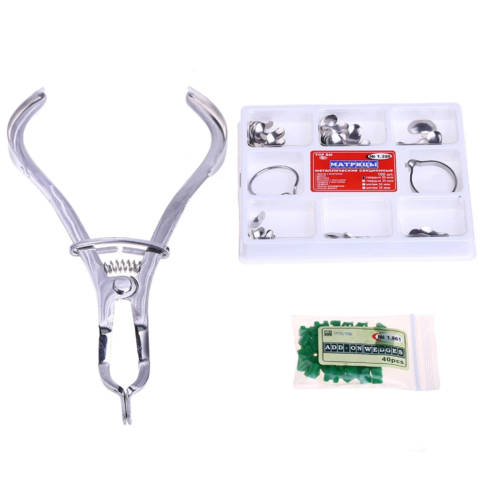 Полный комплект стоматологических матриц, секционные Контурные матрицы + 40 силиконовых дополнительных клиньев + плоскогубцы для стоматологических матриц, формовочный зажим, стоматолог